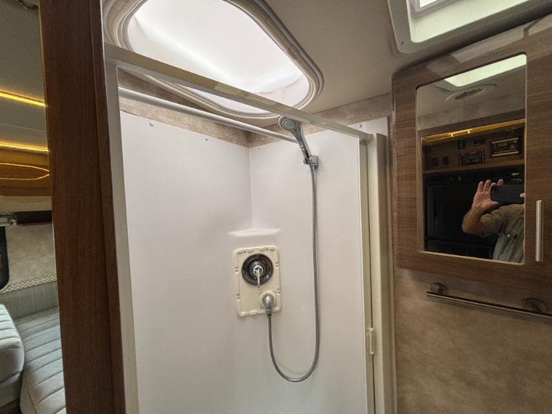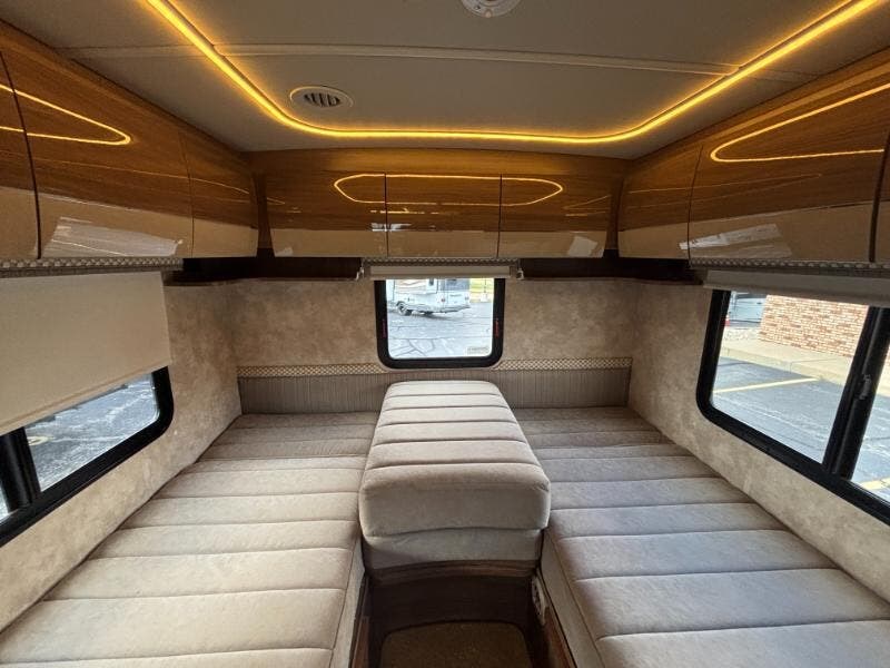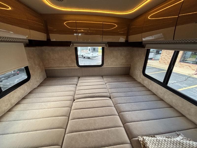 Features Include: 188 HP, 220-Amp Alternator, Hydraulic ABS Brakes, Power Windows, SiriusXM, Spotify, AppRadio One, Cruise Control, Stepwell Light, Entry Assist Handle, Vinyl Flooring, Soft Vinyl Ceiling, LED Lighting, Tinted Windows, Sofa Sleeper (24V), Pantry (24D), Galley Mini Blinds, Laminate Countertops, Stainless Steel Sink, High Rise Faucet, Systems Center, 28-inch HDTV, 32-inch HDTV (24D), Outdoor Speakers, Sleeping, Corner Bed (24J), Queen Bed (24G), Foam Mattress, Medicine Cabinet, Flexible Shower Head, Shower Skylight, Auxiliary Start, 30-AmpService Cord, GFCI Receptacle, 15k AC (na 24D), Water Heater Bypass, Tank Flush System
