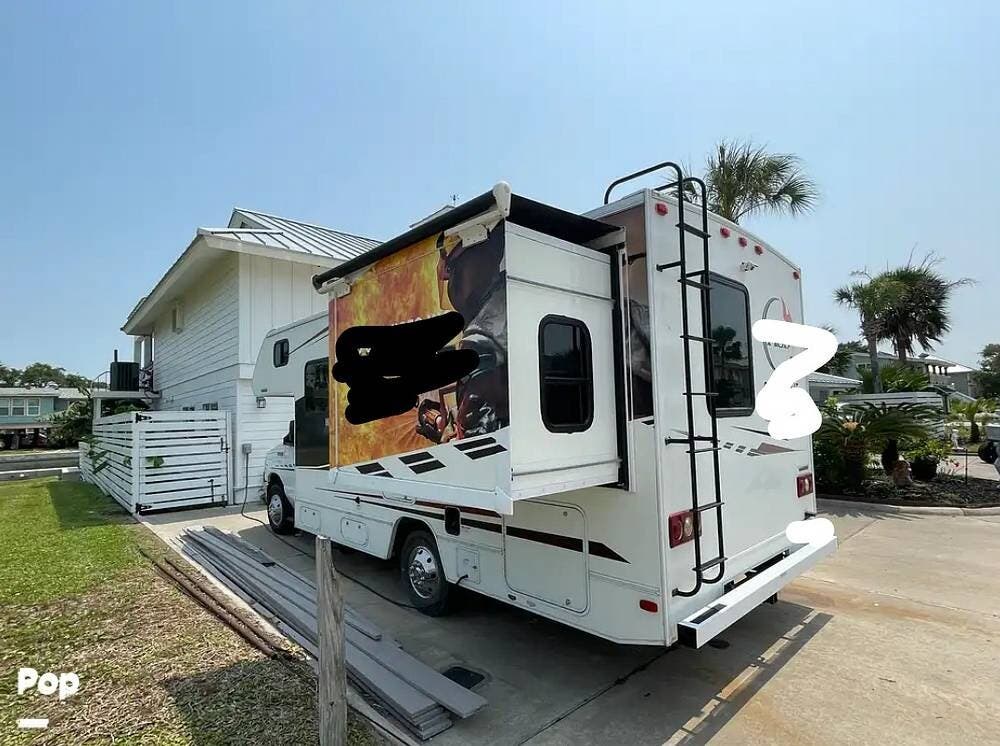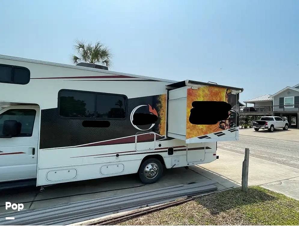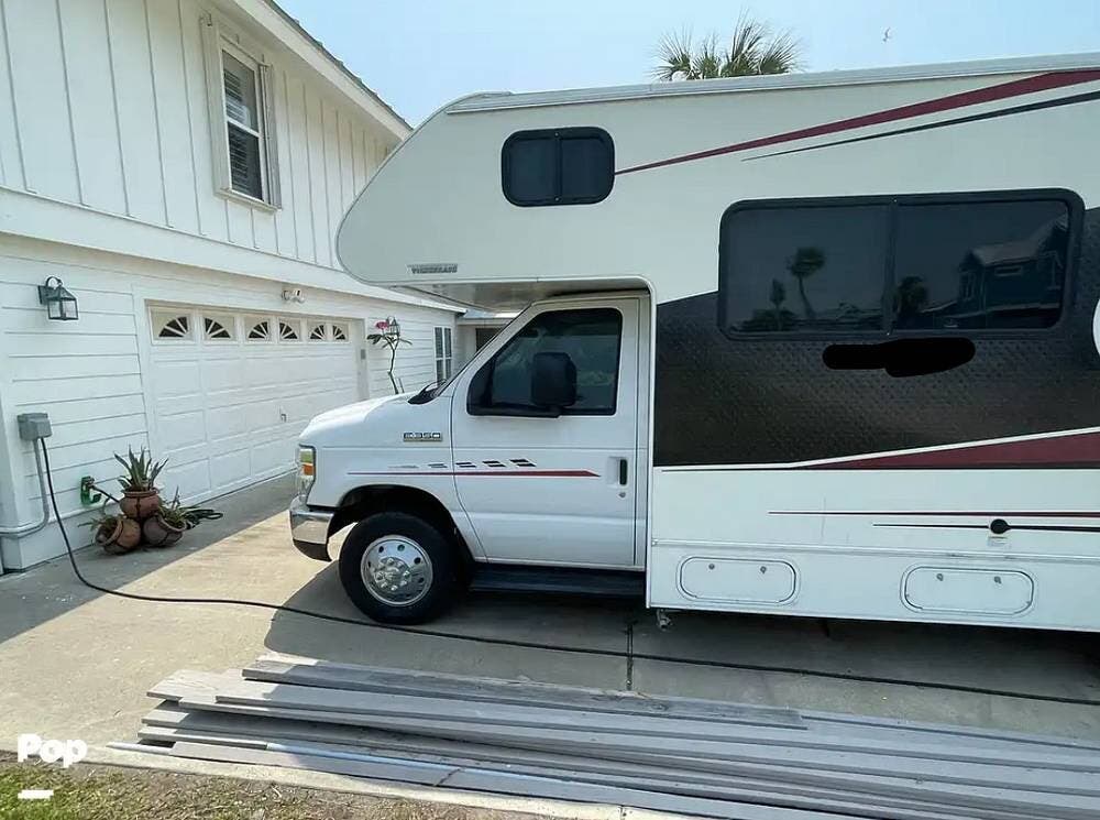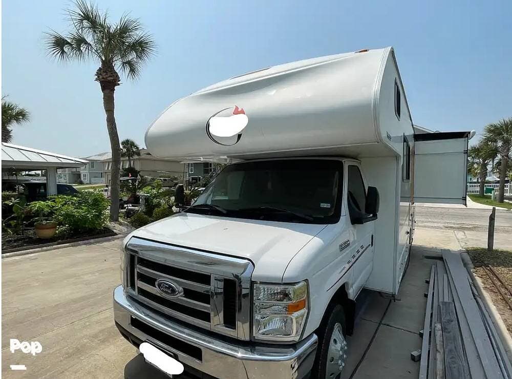 The Outlook 22C is built on a Ford E-350 chassis and powered by a reliable Triton V10 engine. It provides robust performance and smooth handling on various terrains.