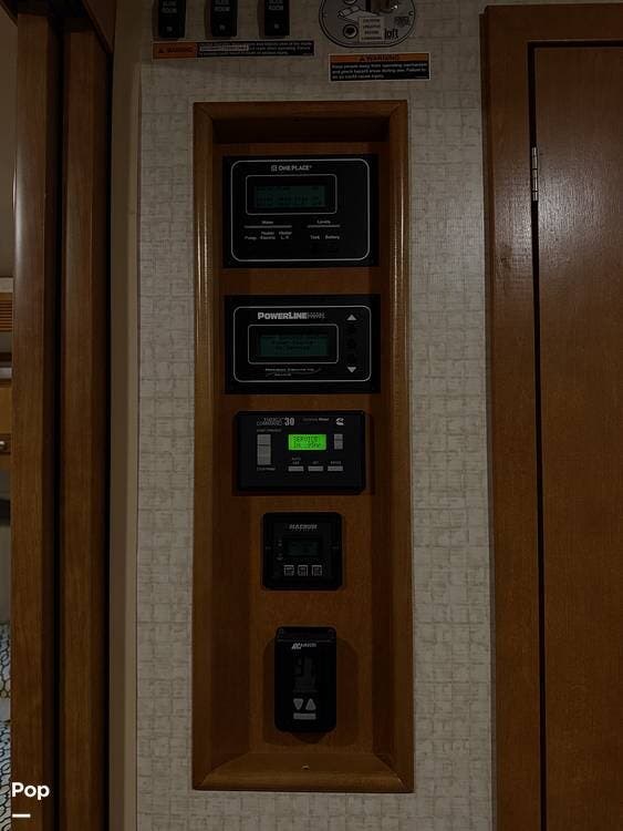 It's equipped with an 80-gallon fuel tank, an 83-gallon fresh water tank, and a 5,500-watt Cummins Onan generator.