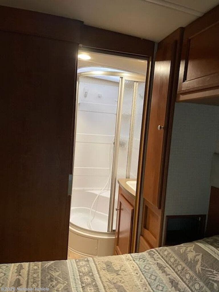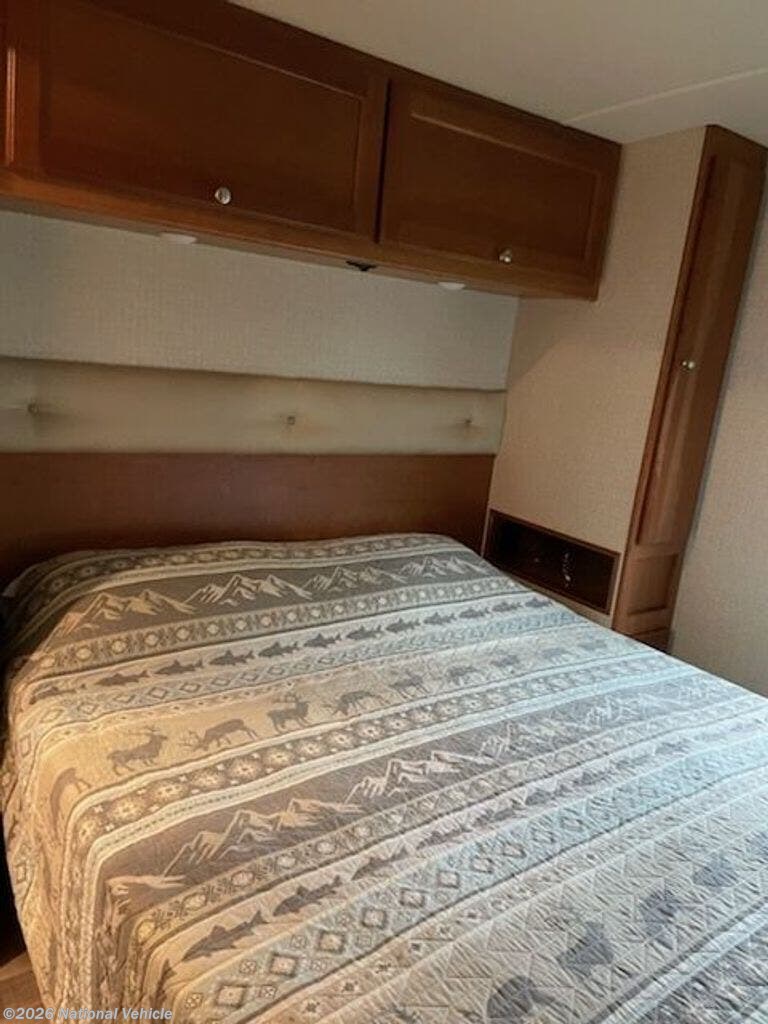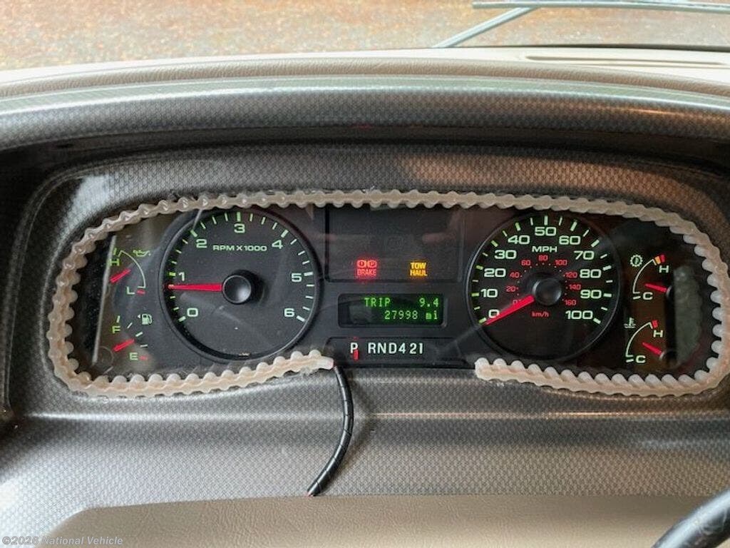 Model 31BE with a full-wall slide-out. A great layout for a 32 foot coach ! Built on a Ford Super Duty F53 Chassis and powered by a 6.8L Triton V-10, 6 speed auto transmission, 27,000 low miles, 4 KW Onan generator, 1000 watt inverter, auto hydraulic leveling, 15K HVAC, power patio awning, and a fiberglass roof.