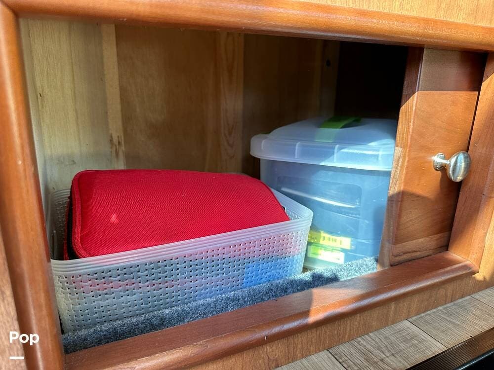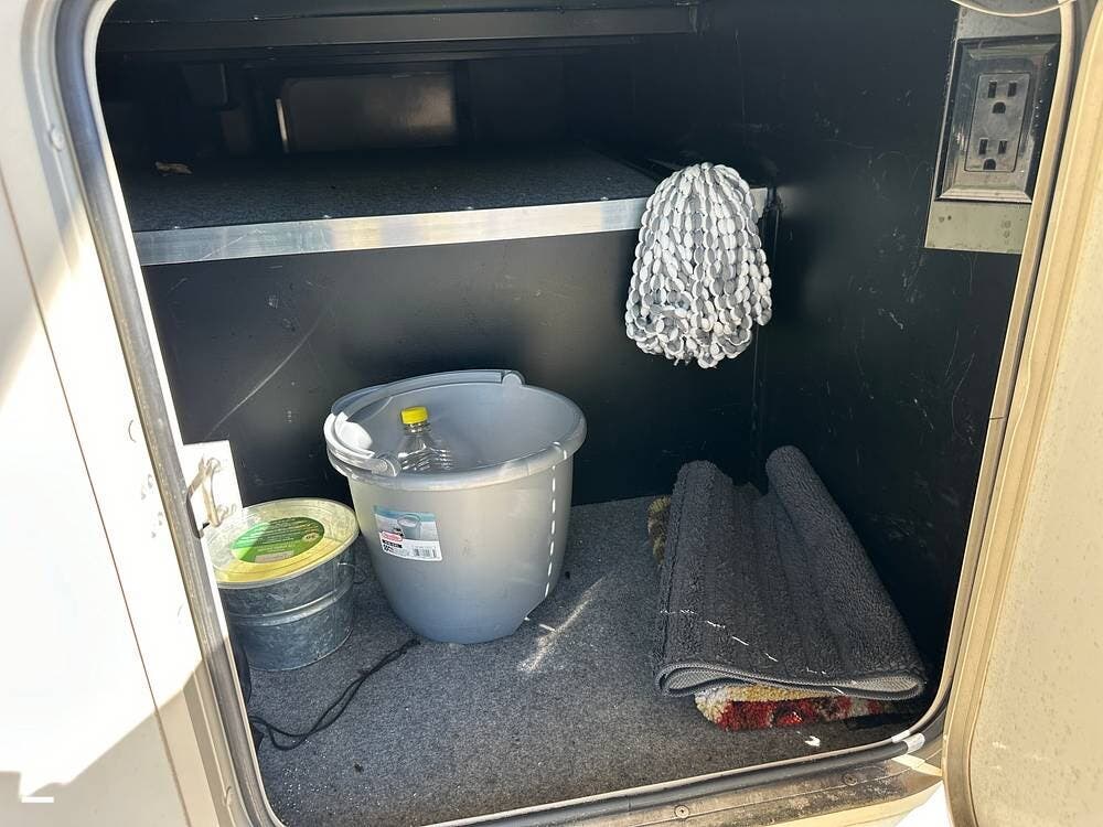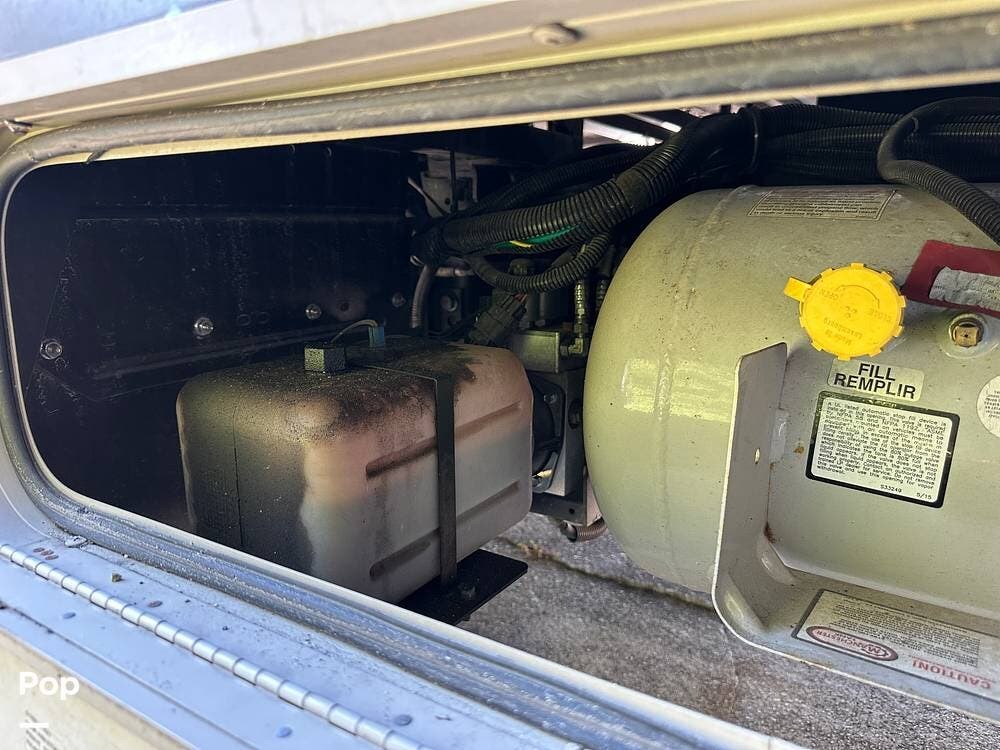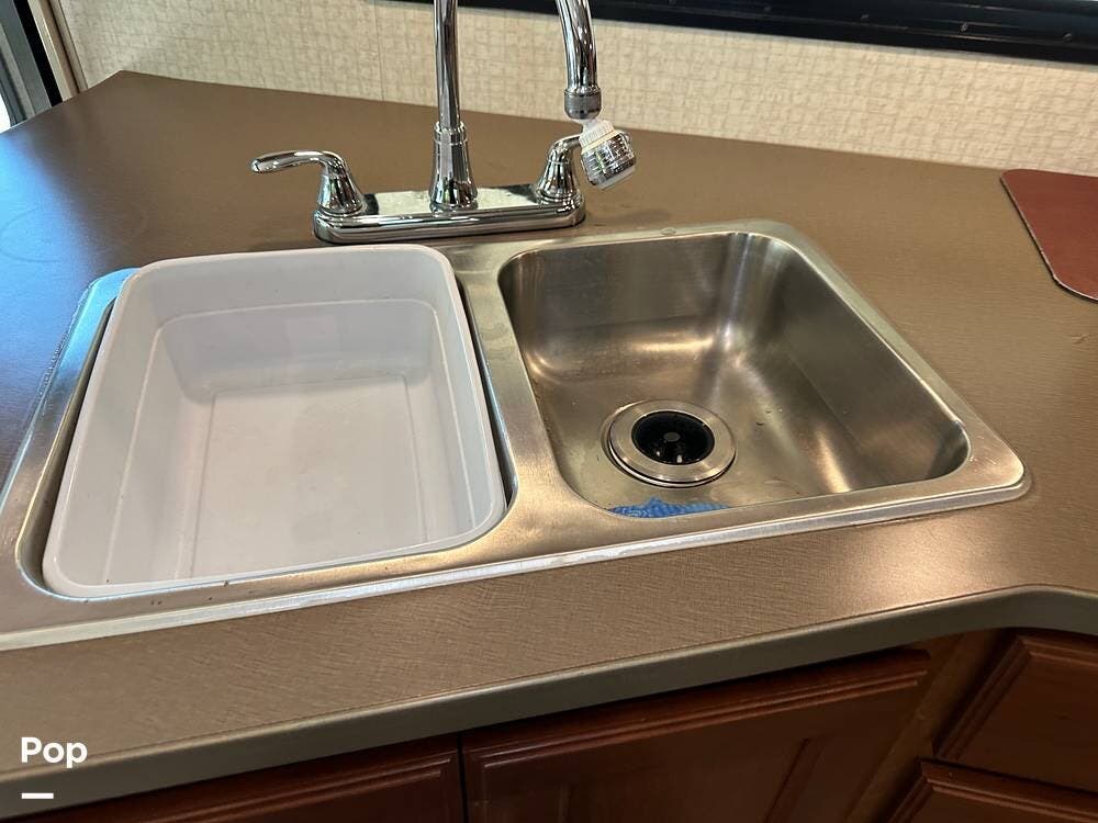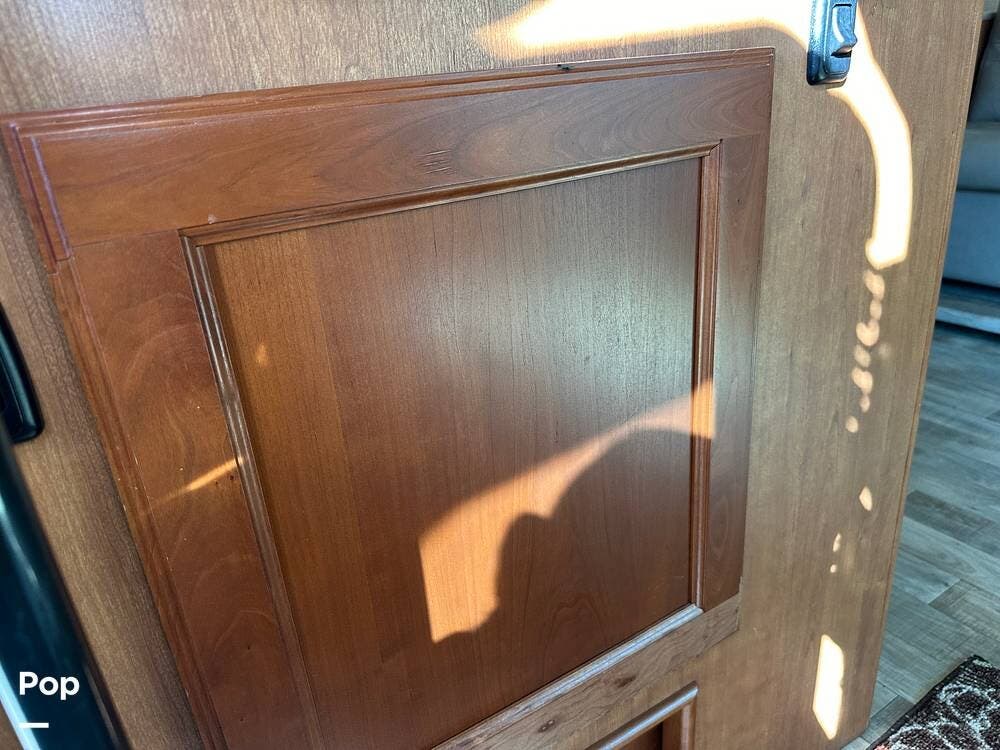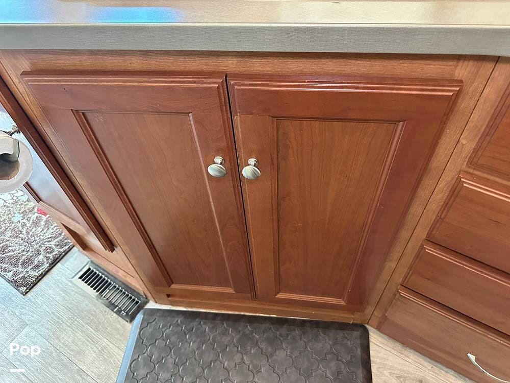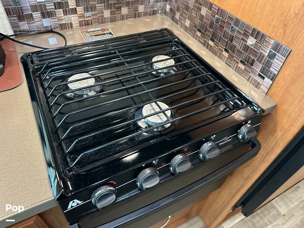 It has a spacious living area with an open floor plan and large slide-outs; you have plenty of room to relax or entertain. The dinette and sofa provide comfortable seating with ample storage space throughout.