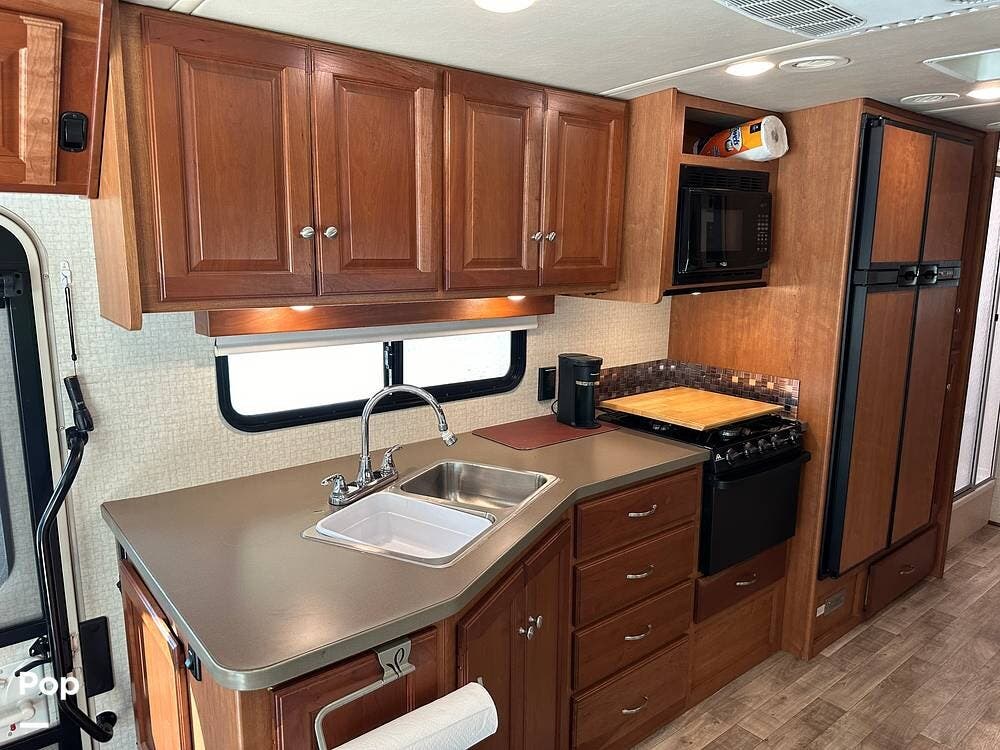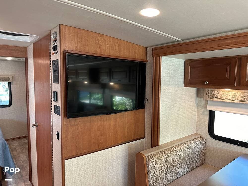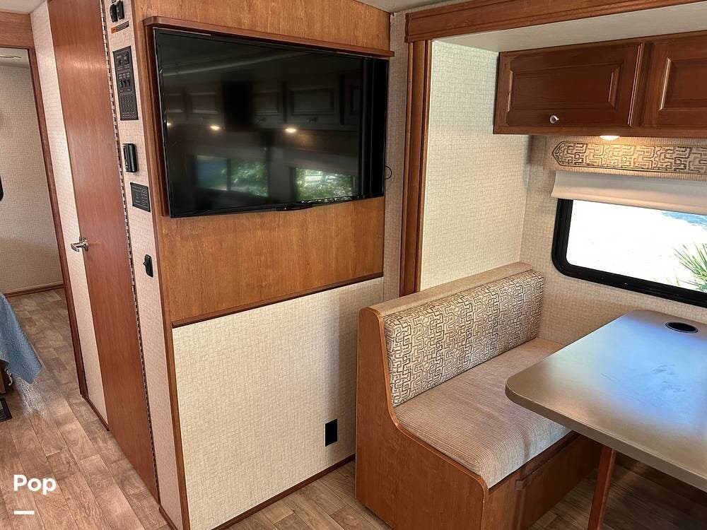 This RV, equipped with a flat-screen TV and a DVD player, ensures that you will never miss your favorite shows or movies.