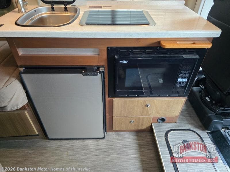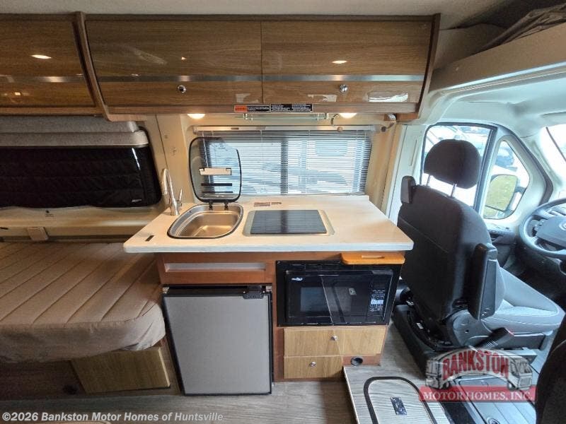 Get ready to go on more road trips and weekend excursions with a Travato class B motor home by Winnebago. You will find that these models feature a Ram ProMaster 280-hp, 3.6L V gas engine. Inside the cab there is a radio/GPS navigation/rearview monitor system plus front and cab window privacy panels. The 24" HDTV and coach stereo system w/AM/FM radio, Bluetooth, CD/DVD player allows you to watch a little TV a movie, or listen to your favorite music. The kitchen is not lacking on features here you will find Corian counter tops, a 2-burner range top with glass cover and heat shield where you can fix your favorite meals, plus there are cabinets and overhead storage throughout. What are you waiting for? Come start your next trip with a Travato!