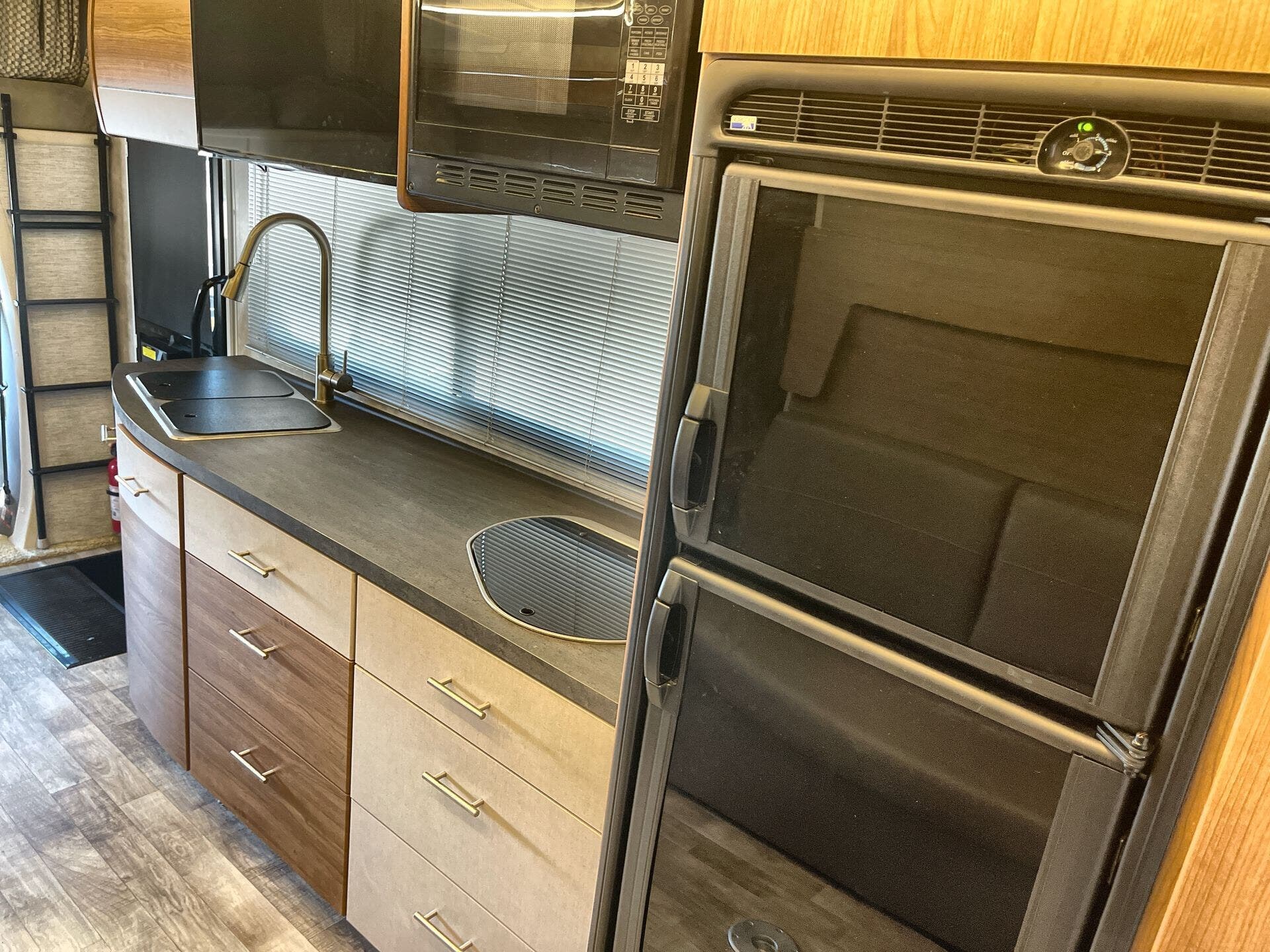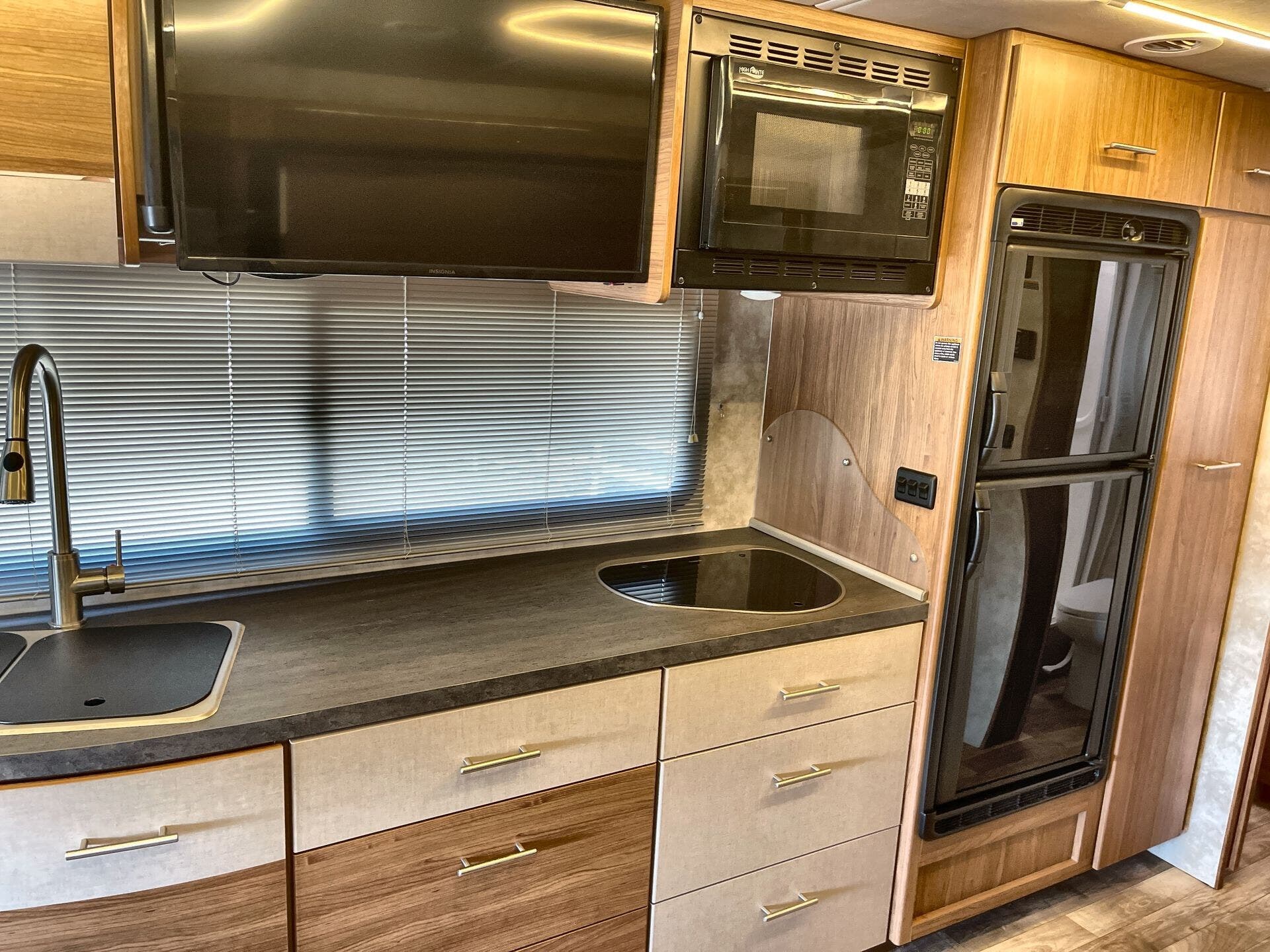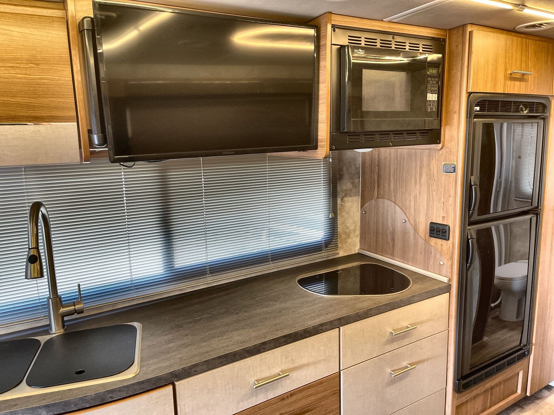 - Practical features like Convection Microwave, TV, Awning, Backup Monitor, and more