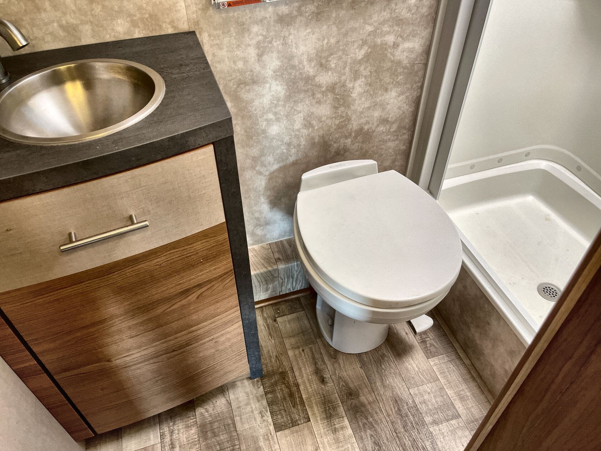 Medicine Cabinet, Queen Bed, Shower, Toilet