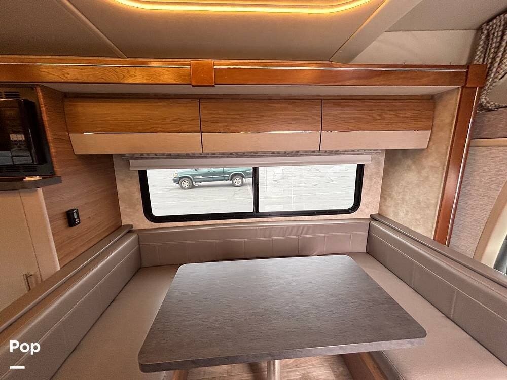 It sleeps six with its rear corner bed, overhead bunk, and U-shaped dinette sleeper.