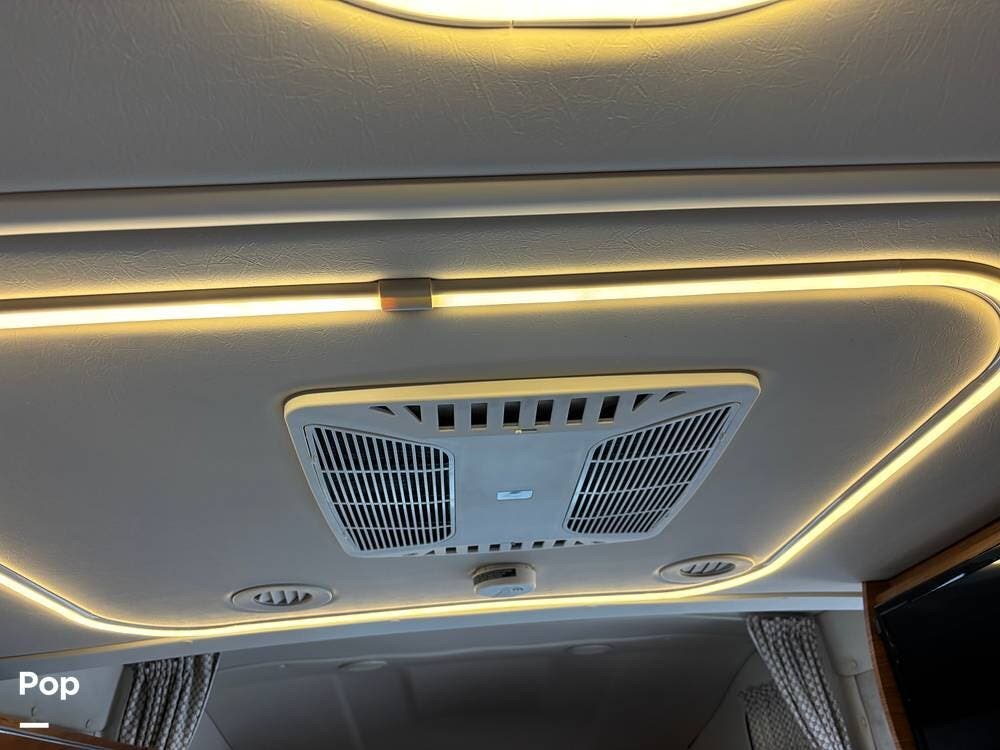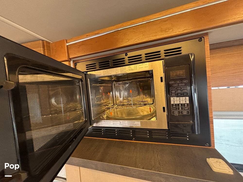 The full galley kitchen has a 2-burner stove, microwave/convection oven, and a dual-power refrigerator.