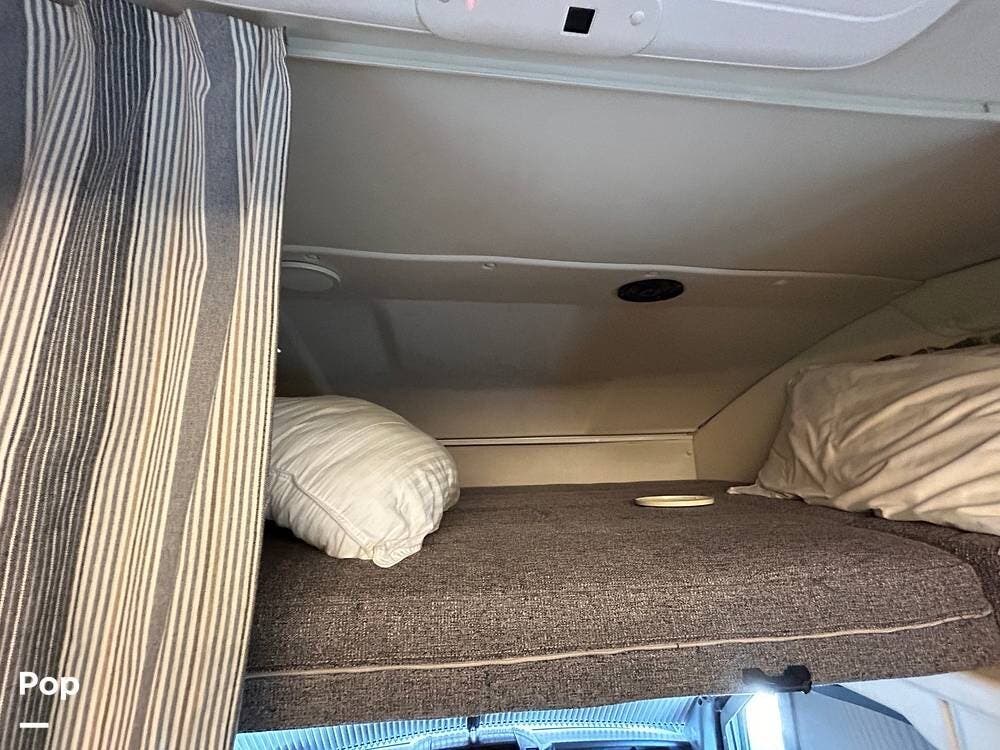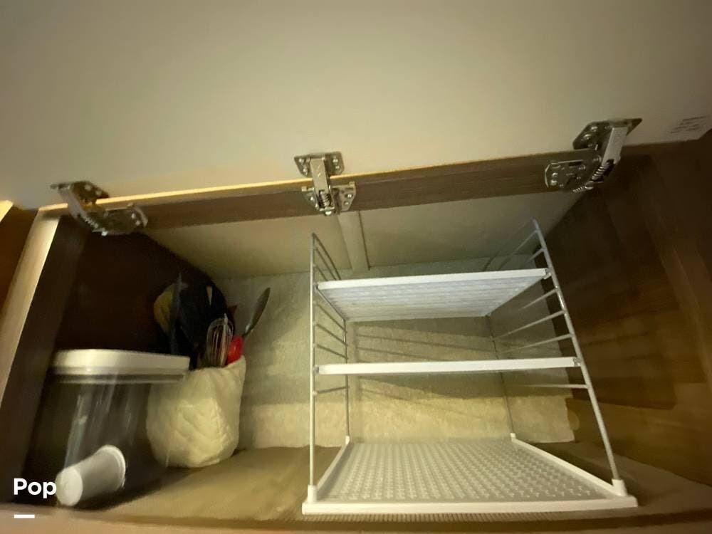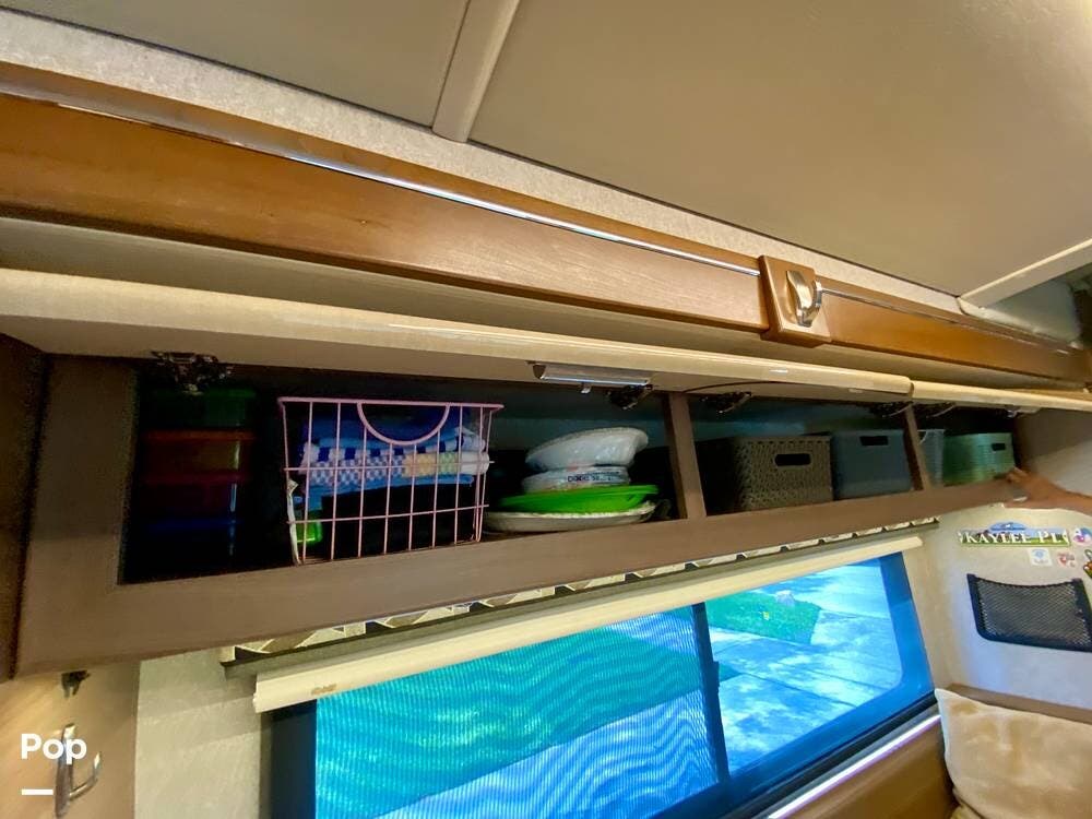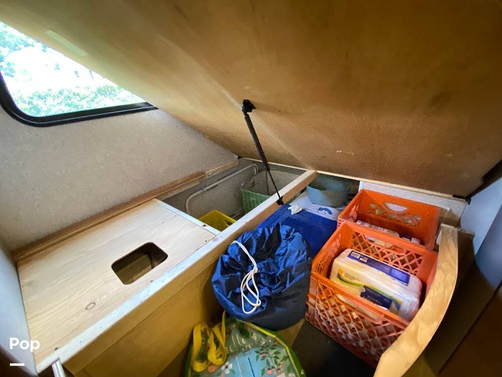 The U-shaped dinette converts into a bed, complemented by a cab-over bunk and a corner bed, comfortably sleeping up to six. Ample storage throughout ensures there's room for all your gear.