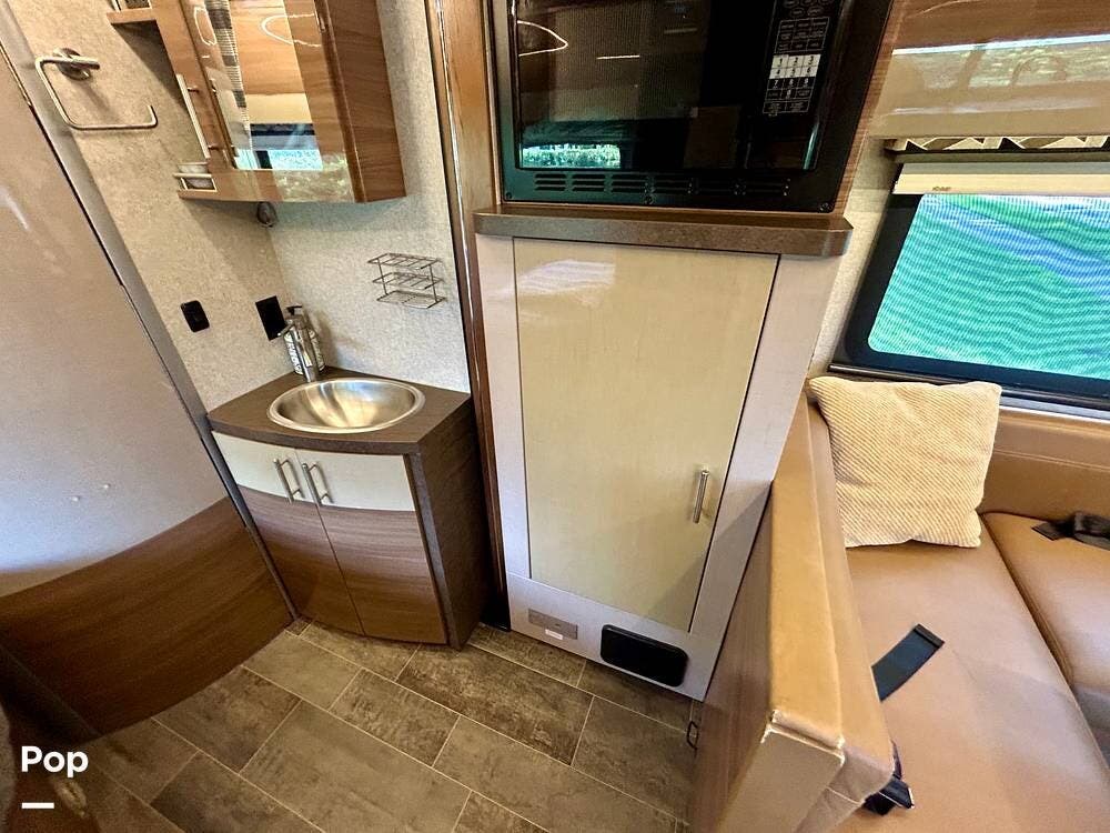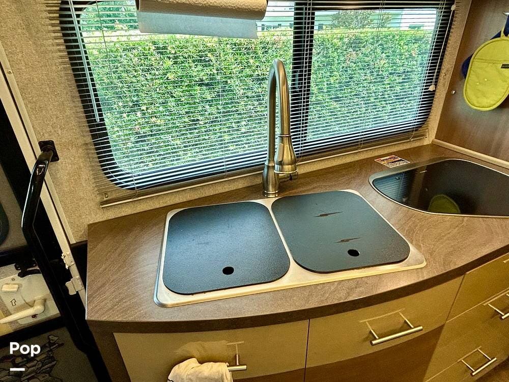 Winnebago has maximized space in the 24J with a fully functional kitchen featuring a dual-compartment sink, two-burner stove, oven, convection microwave, and compressor-driven refrigerator.