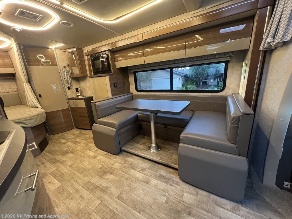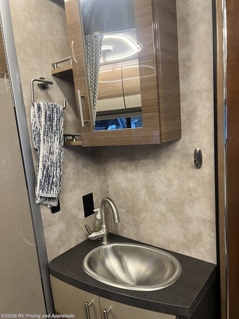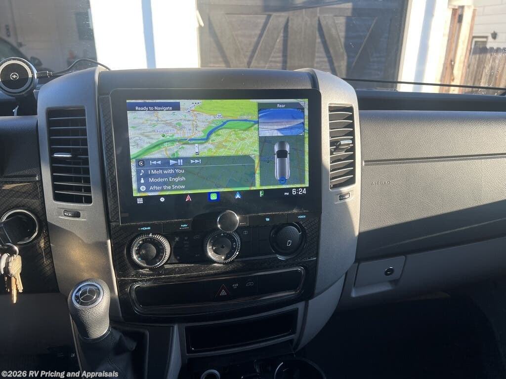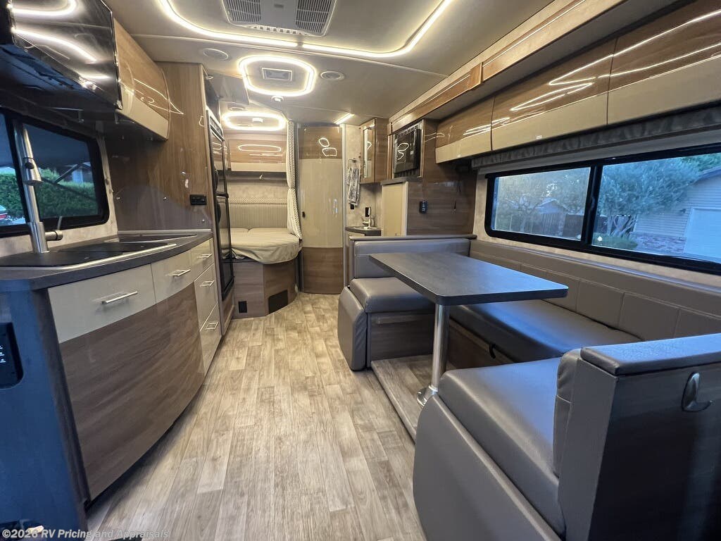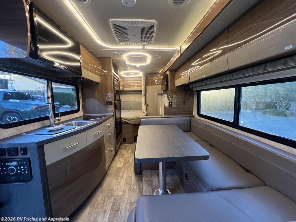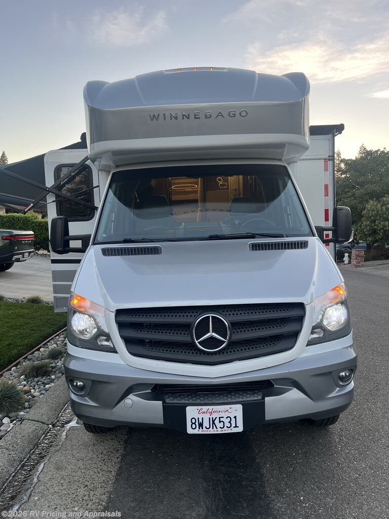The 2018 Winnebago View 24J is a well-appointed recreational vehicle built on a Mercedes-Benz Sprinter chassis, offering the reliability of diesel power and the ease of driving a compact Class C motorhome. Powered by a 3.0L V-6 turbo-diesel engine delivering 188 horsepower and a smooth 5-speed automatic tip-shift transmission, this RV is designed for confident highway cruising and efficient fuel use. At a length of 25 feet 8 inches, it provides a versatile bunk-over-cab sleeping area and a comfortable front living area, making it ideal for families or groups up to six. The U-shaped dinette is perfect for dining, playing games, or taking in a movie on HDTV. The exterior features Bay Mist full-body paint, while the interior showcases Zinc/Gray with a high-gloss Marbella Cherry Canvas, creating a modern, inviting atmosphere with power awnings with integrated LED lighting with premium sound. Currently located in Folsom, California, this unit is an outstanding value for shoppers seeking a dependable, well-maintained motorhome.