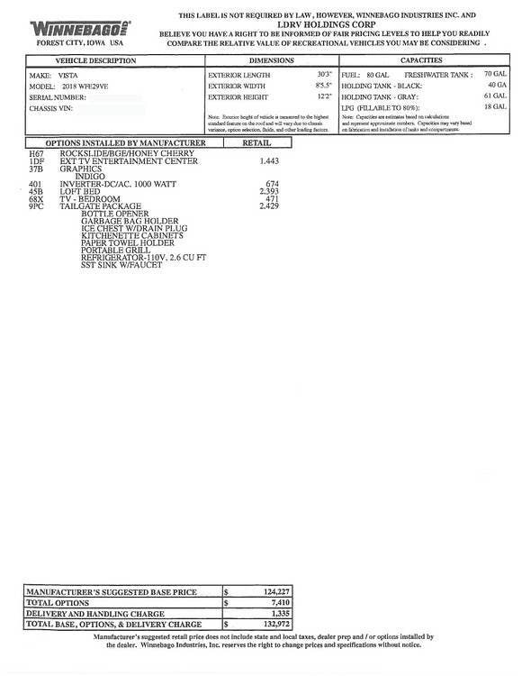 Looking to buy a 2018 Winnebago Vista Class A RV?