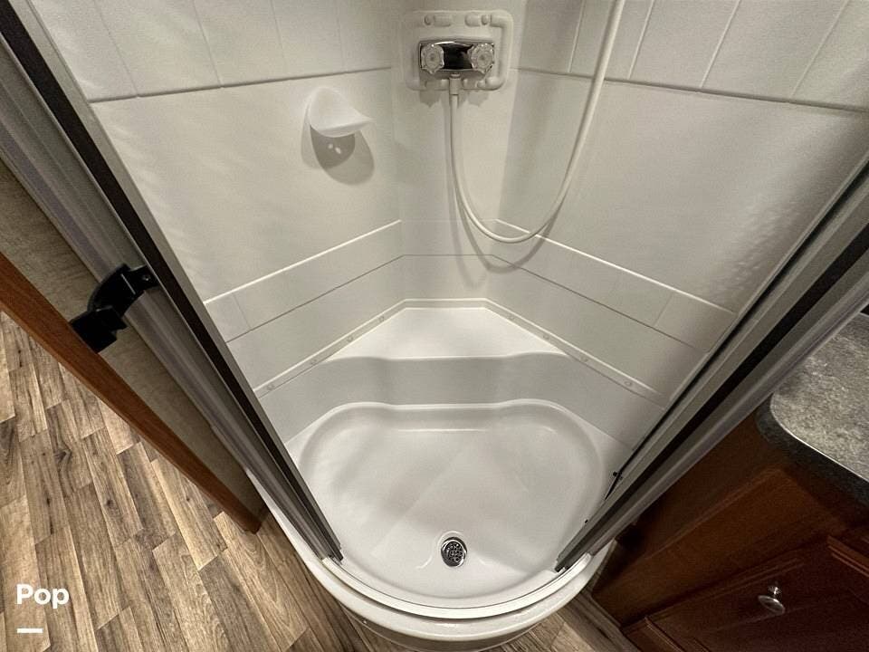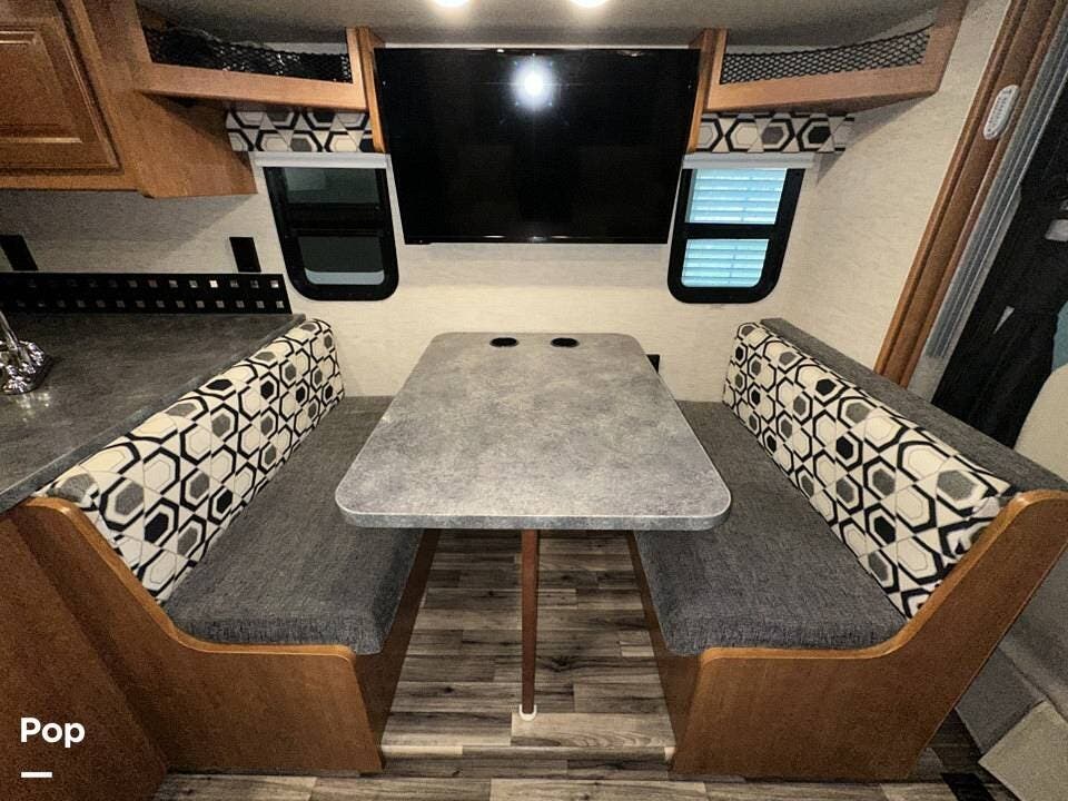 The entertainment hub with a 39" HDTV and video system, vinyl flooring, and tinted windows with blackout roller shades makes this motorhome feel like a home away from home.