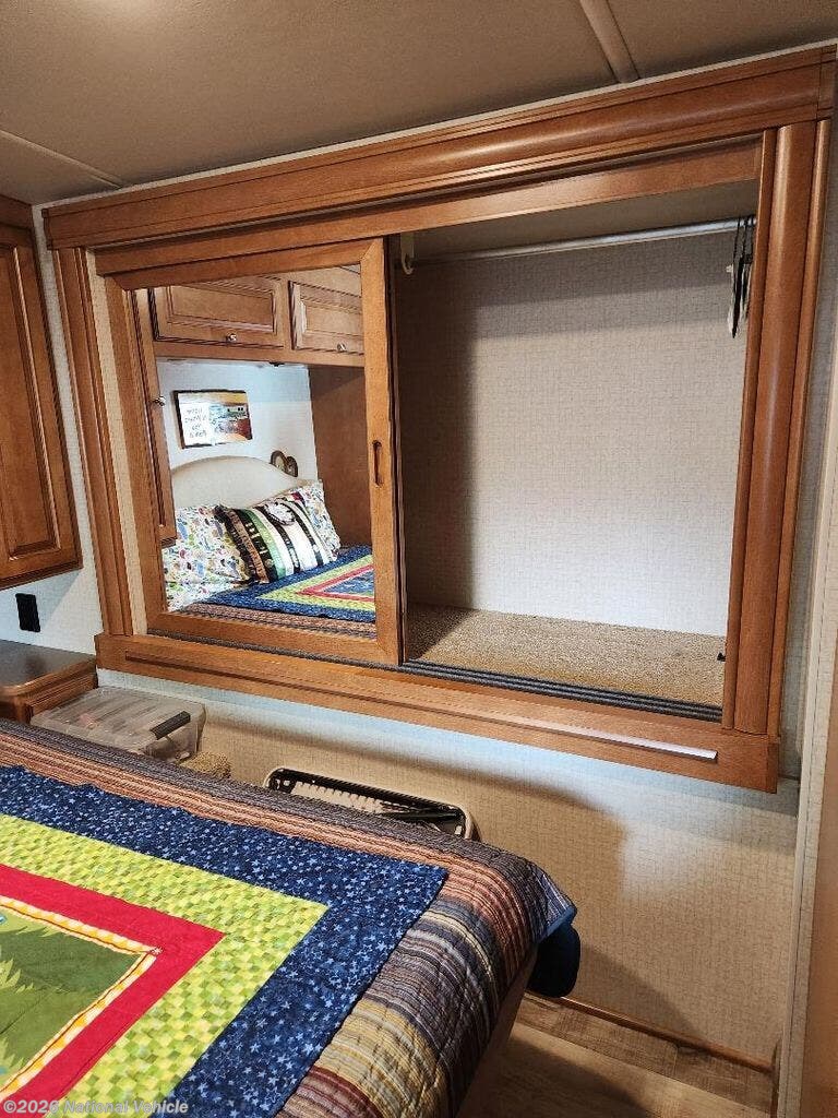 This Winnebago Vista LX class A gas coach 27N features triple slide outs for added interior space plus the slide out along the door side is a full wall slide out. Sleeping space can be found at the 42" x 73" dinette and the queen bed in the private rear bedroom. The side aisle bathroom has everything you need to get ready for the day including a 34" x 34" shower, plus a toilet, sink, and storage cabinet. Get ready to do a whole lot of relaxing in this class A motor home!