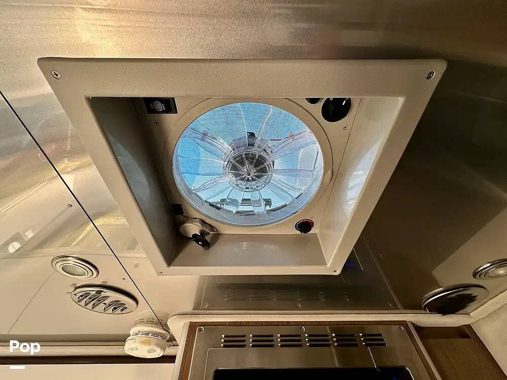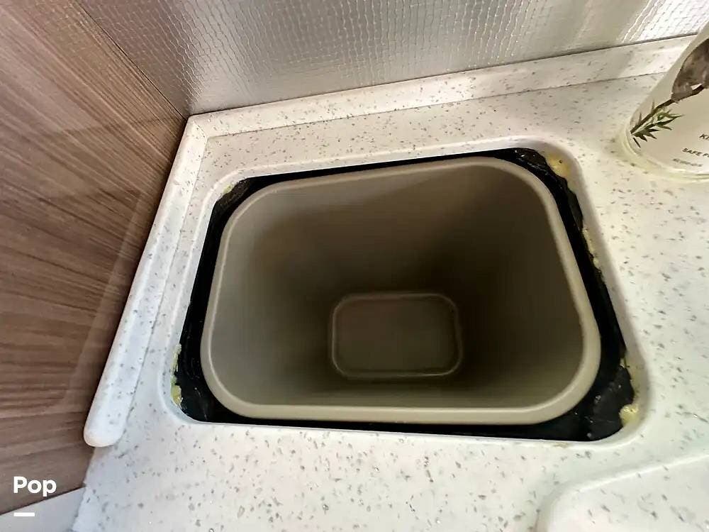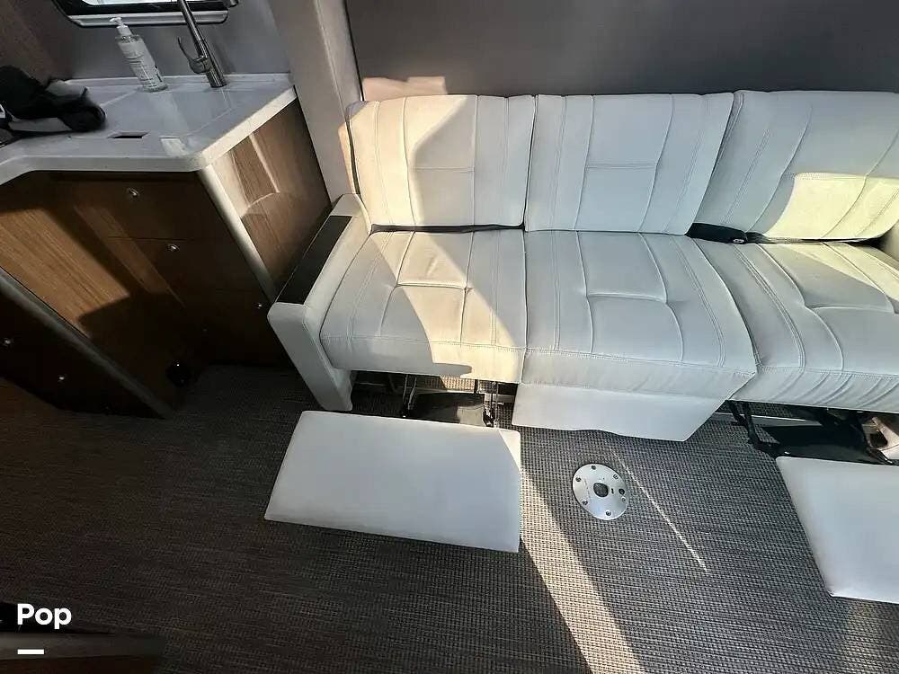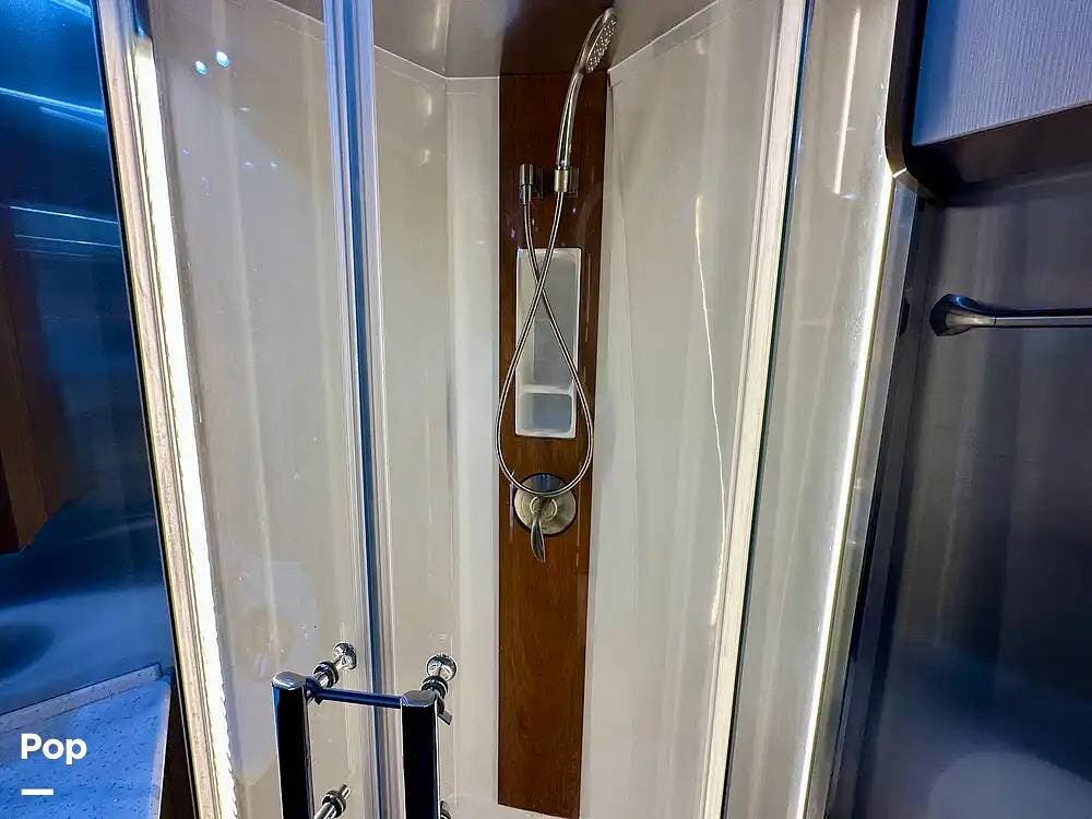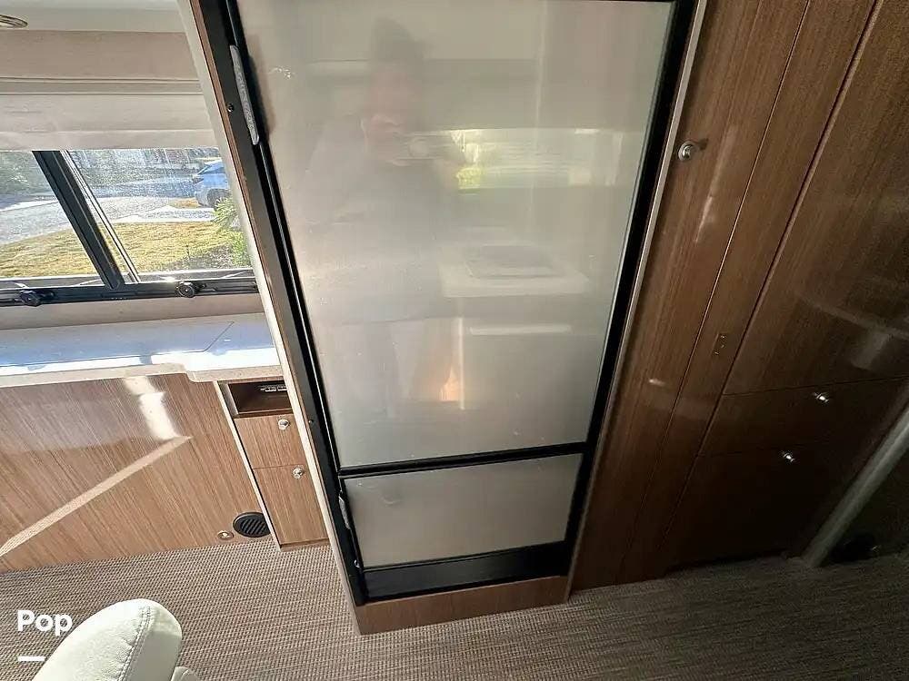 The galley has all you need to prepare a meal, with a stainless steel sink, Kohler faucet, two-burner propane cooktop, 9.1 CF refrigerator/freezer, and microwave-convection oven, ready to create anything from simple snacks to gourmet meals.