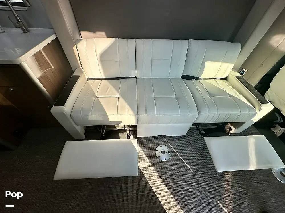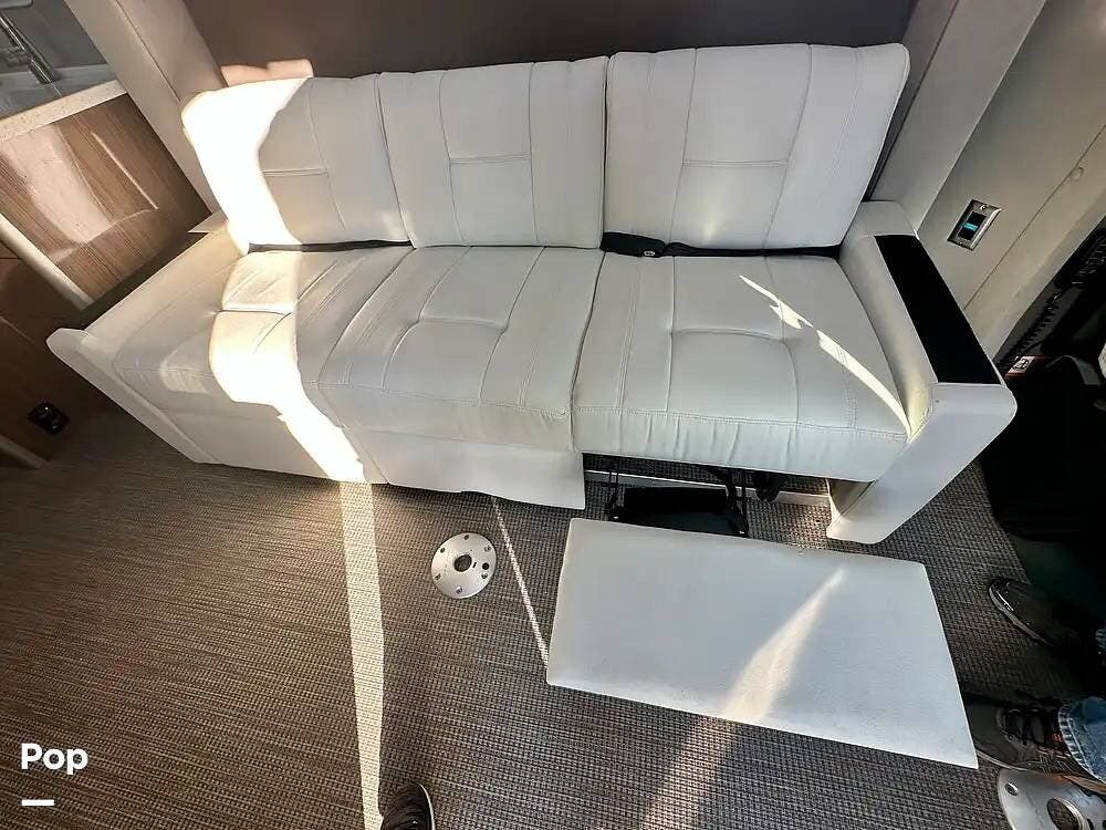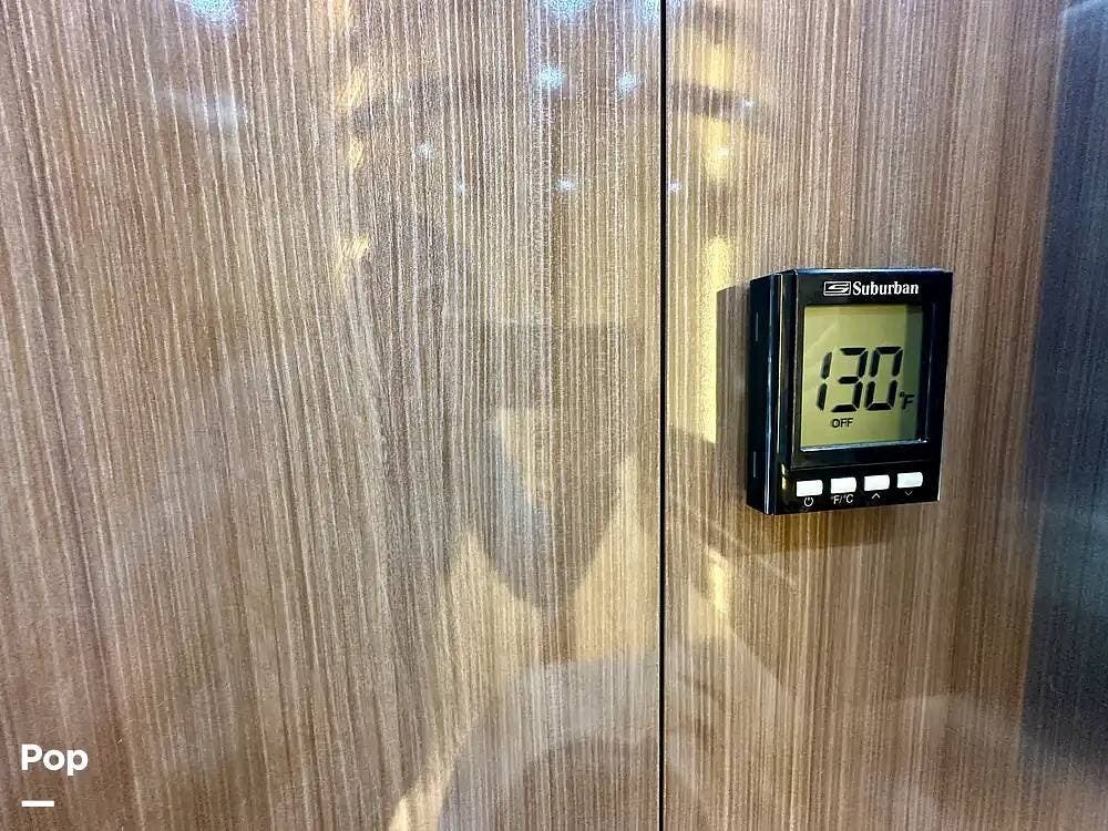 Slide into the heated leather swivel seats, set the perfect angle with the telescoping steering wheel, and let the touchscreen NAV system guide you to destinations unknown. When you arrive, the power slide expands the space to an impressive 8'3" width, revealing a sanctuary of comfort. The power leather sofa lets you relax with the leg rest, while two pedestal tables provide the perfect setup for dining or work.