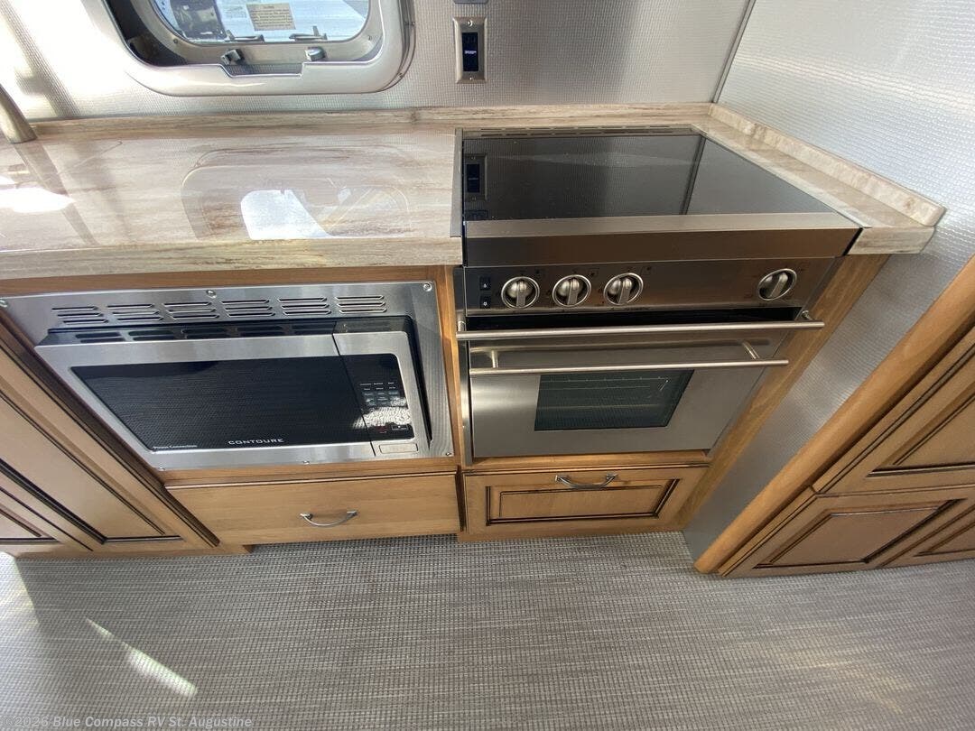 No matter how long your journey may last, you will want an Airstream Classic travel trailer. You will enjoy plenty of features such as a Multiplex control panel that with the touch of a button you can control lighting and technology. While you are away from home you can enjoy a variety of entertainment features such as a Polk stereo with XM/AM/FM Satellite radio and Bluetooth, a 65" or 32" living room TV depending on the model, plus a Blu-Ray DVD player. Each kitchen has enough features throughout to make you feel like you are still at home from the three burner gas cook top to the Corian countertops you will enjoy all of the space!