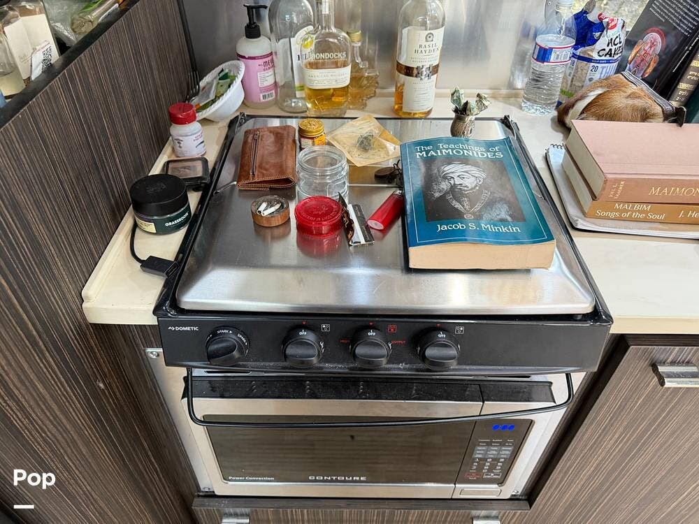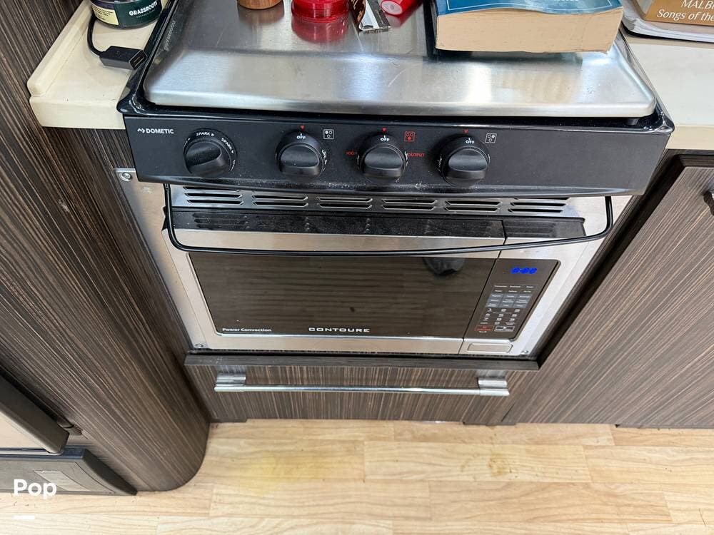 Nice-size stove with cooktop and oven for your meals, and a nice-size queen bed with an upgrade to two 13,500 BTU AC units.