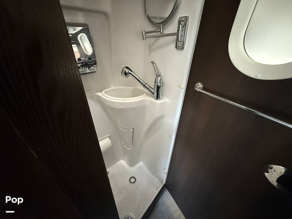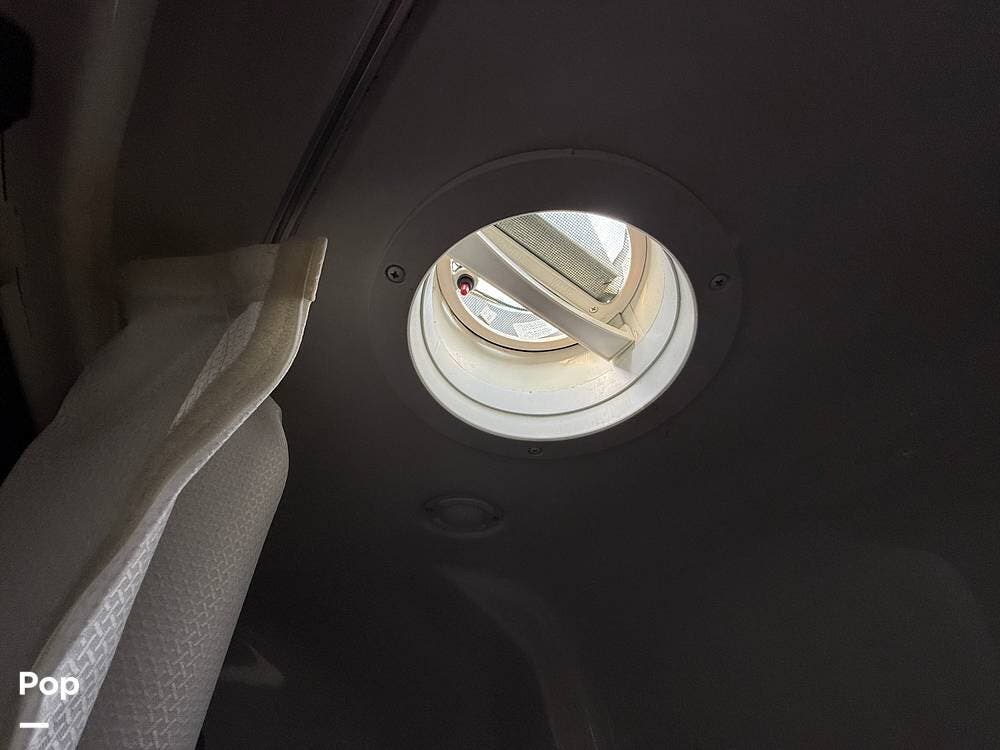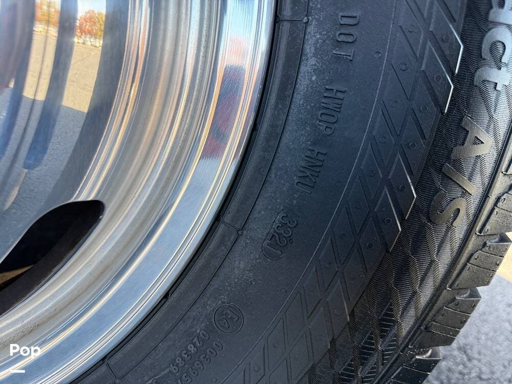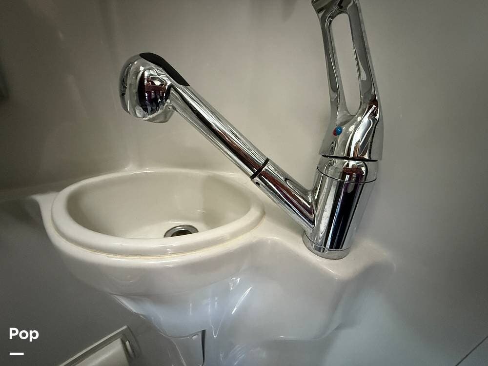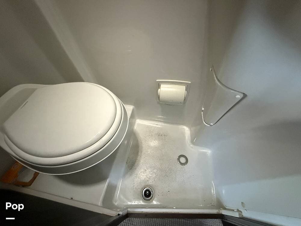 Overhead, ample storage lockers, and a wardrobe keep belongings organized, while the wet bath -- equipped with a porcelain toilet, shower, and sink -- ensures hotel-like convenience without the need for campground hookups.