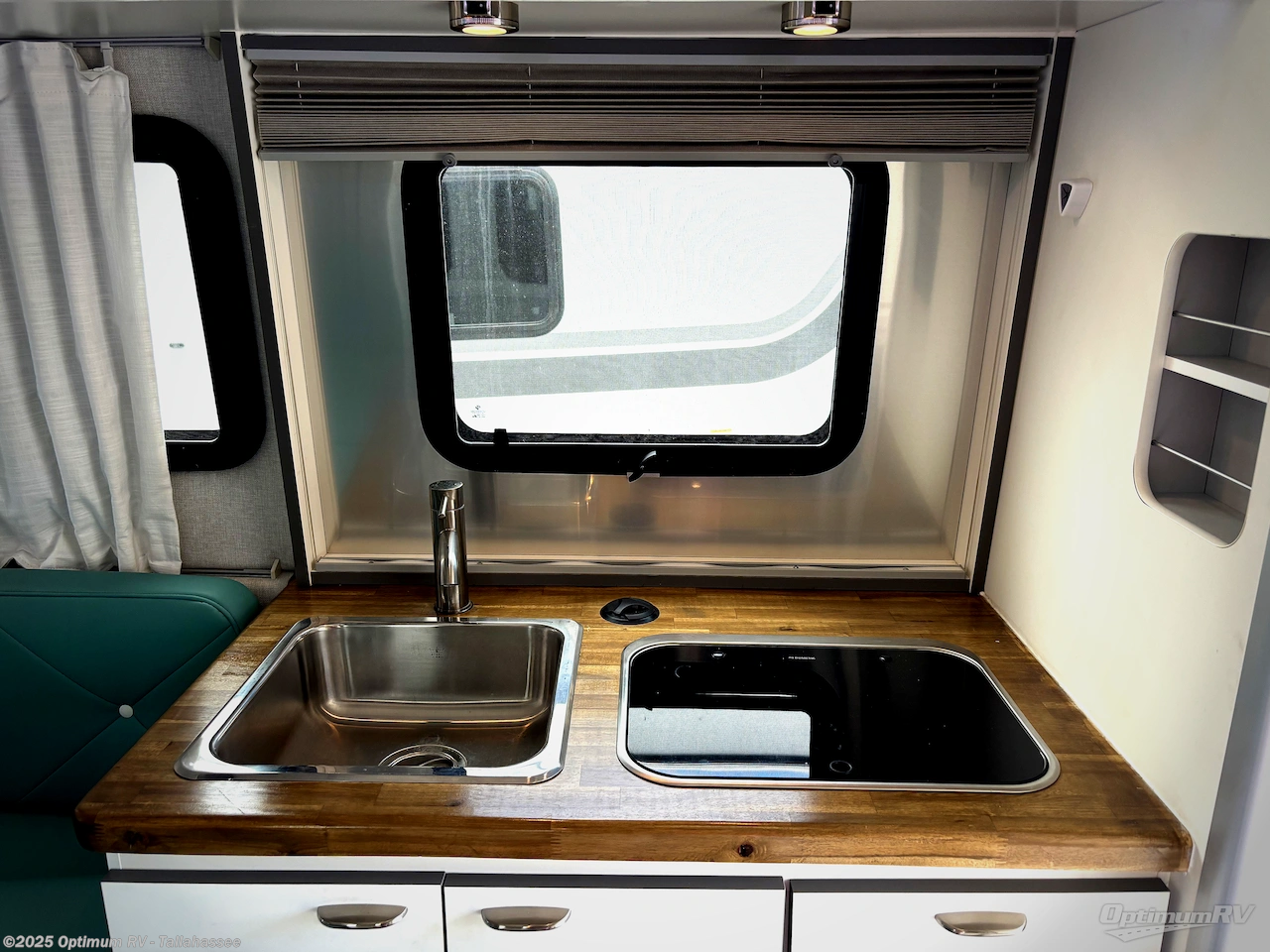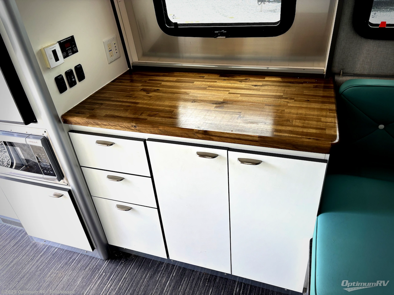Are you ready to nestle yourself and your mate into a cozy environment surrounded by the beauty of nature? With this Airstream Nest travel trailer you can. You will love the six side windows, skylight, and vertical window on the rear entry door to bring in tons of natural lighting, plus a great view of your surroundings. When you need a bit of privacy you can easily draw the blackout shades closed. A 58" x 80" queen bed is ready when you are for a welcome slumber on the Tuft & Needle foam mattress provided. When you wake in the morning you will find the rear corner wet bath a welcome space to get refreshed and ready for wherever your day takes you. Whipping up a favorite meal or snack is also easy with the kitchen amenities provided. You will enjoy a 3.2 cu. ft. refrigerator, a two-burner cook-top, and microwave oven. This unit also provides ample storage throughout.