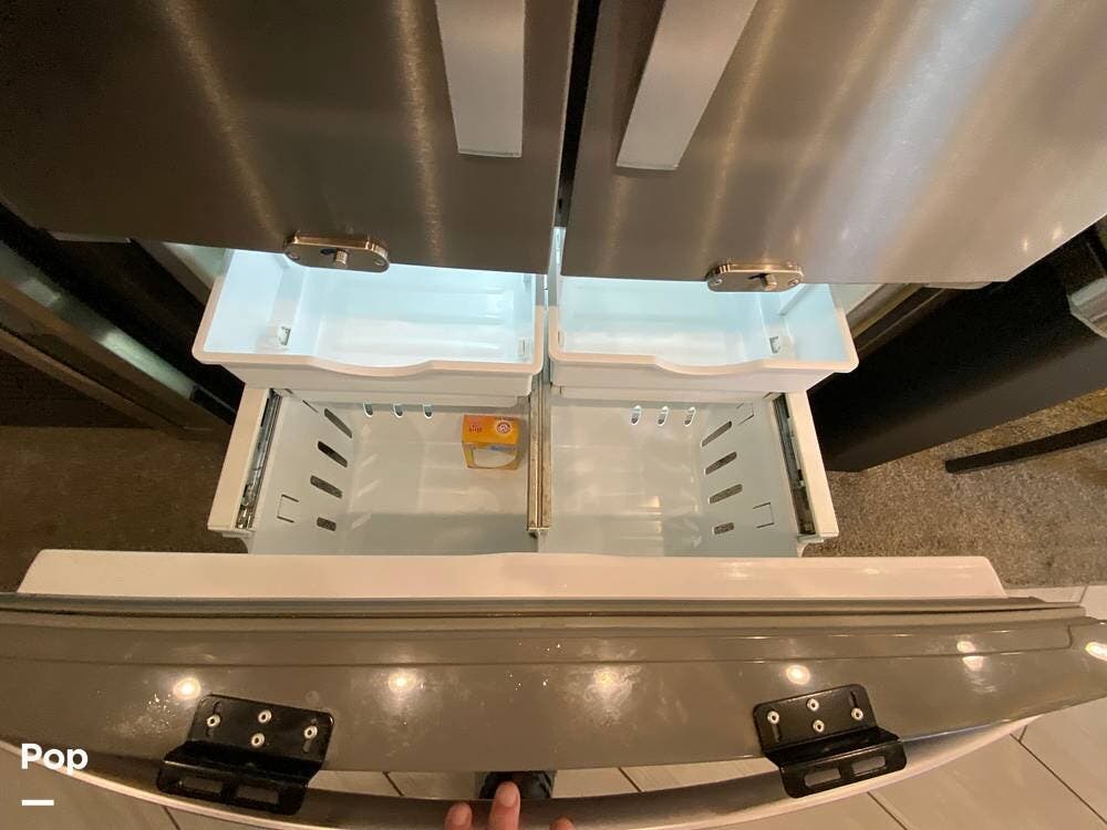 It does not end there! Rearward, there are 2 Ultra leather couches, one of which turns into an L-shape with an arm. The heated floors will keep you comfy in the cooler months as well.