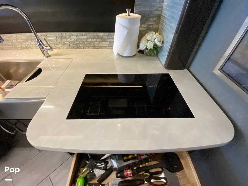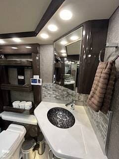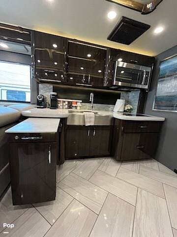 Here we go folks, beautiful & cared-for Top of Line Coach here. As soon as you walk inside all you see is fine cabinetry that shines and tile floors equally as well.