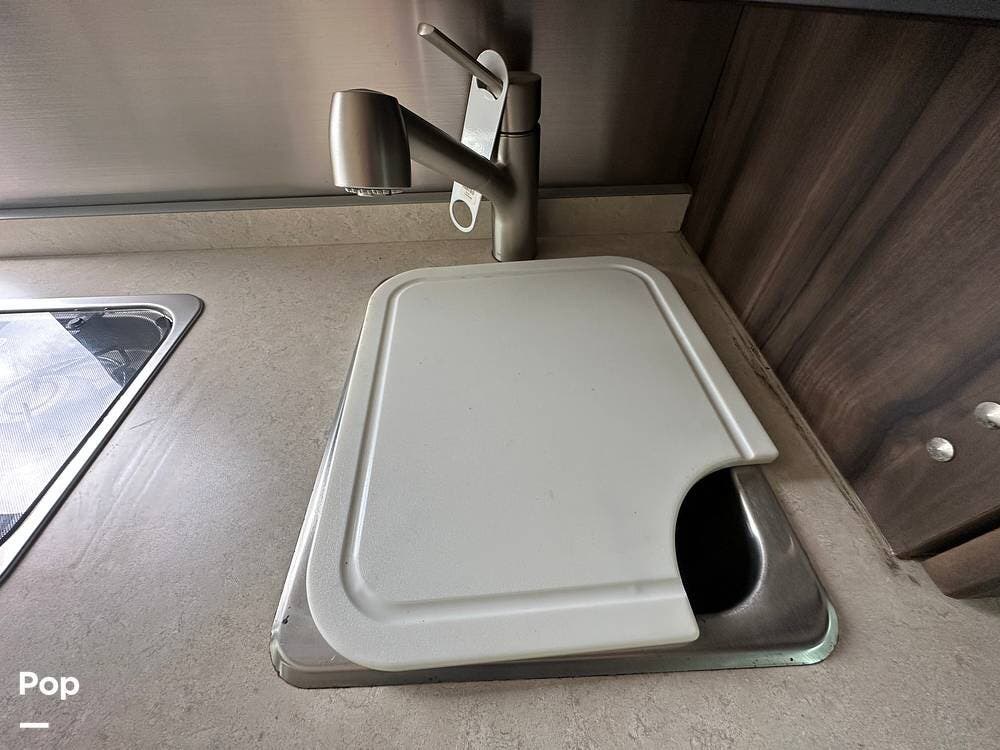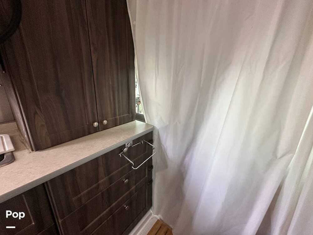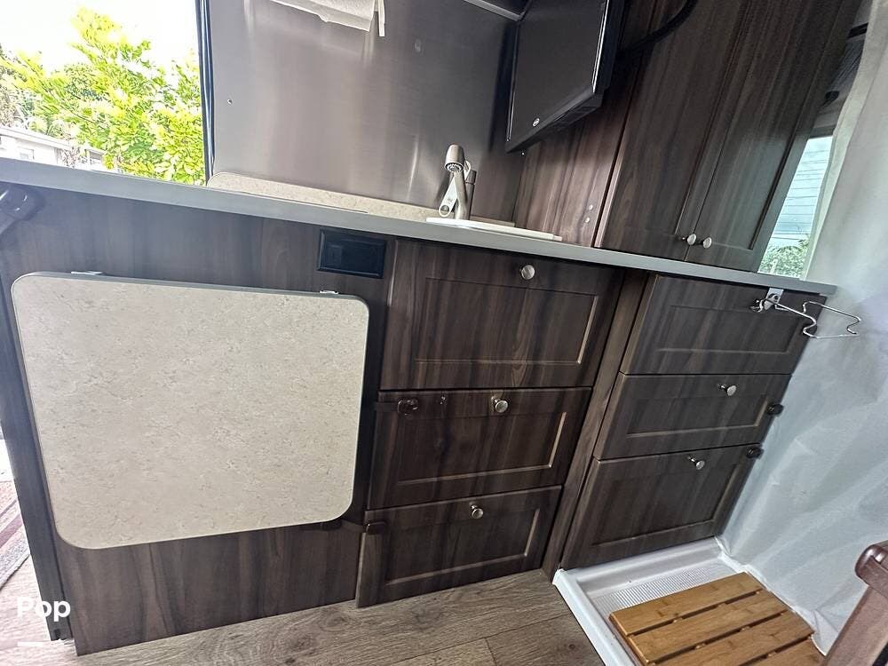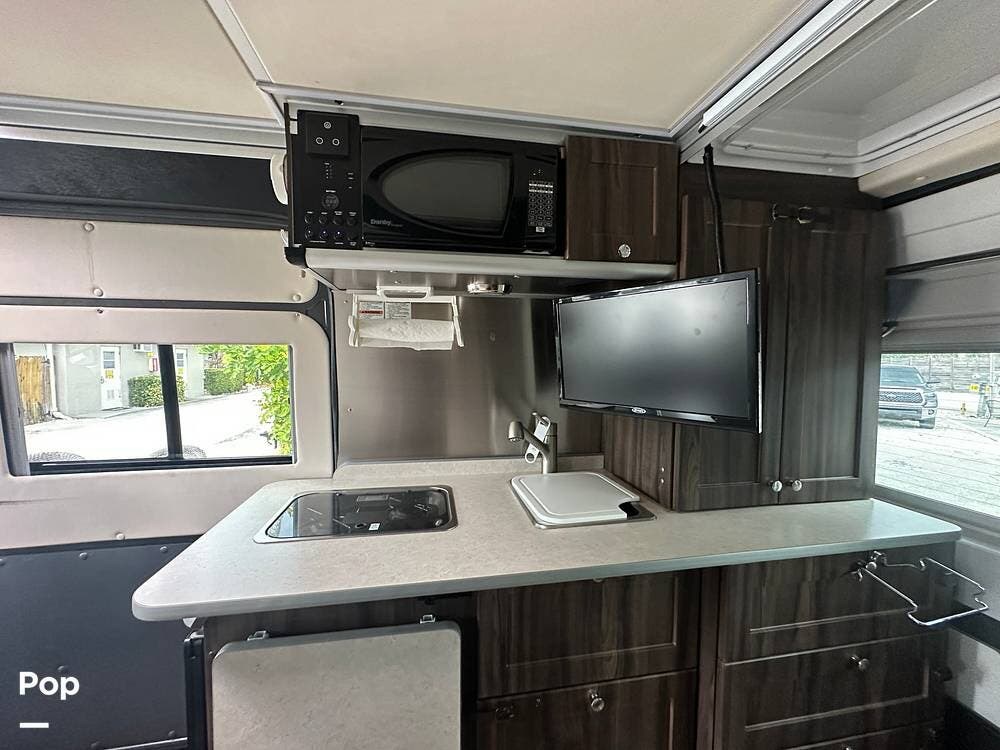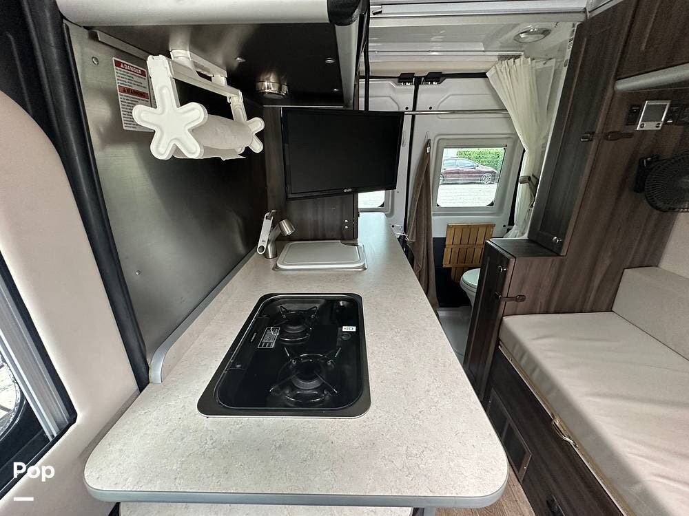 Inside, you'll also find a fully functional kitchen equipped with a cooktop, a refrigerator/freezer combo, and ample storage, making meal prep on the road enjoyable and straightforward.