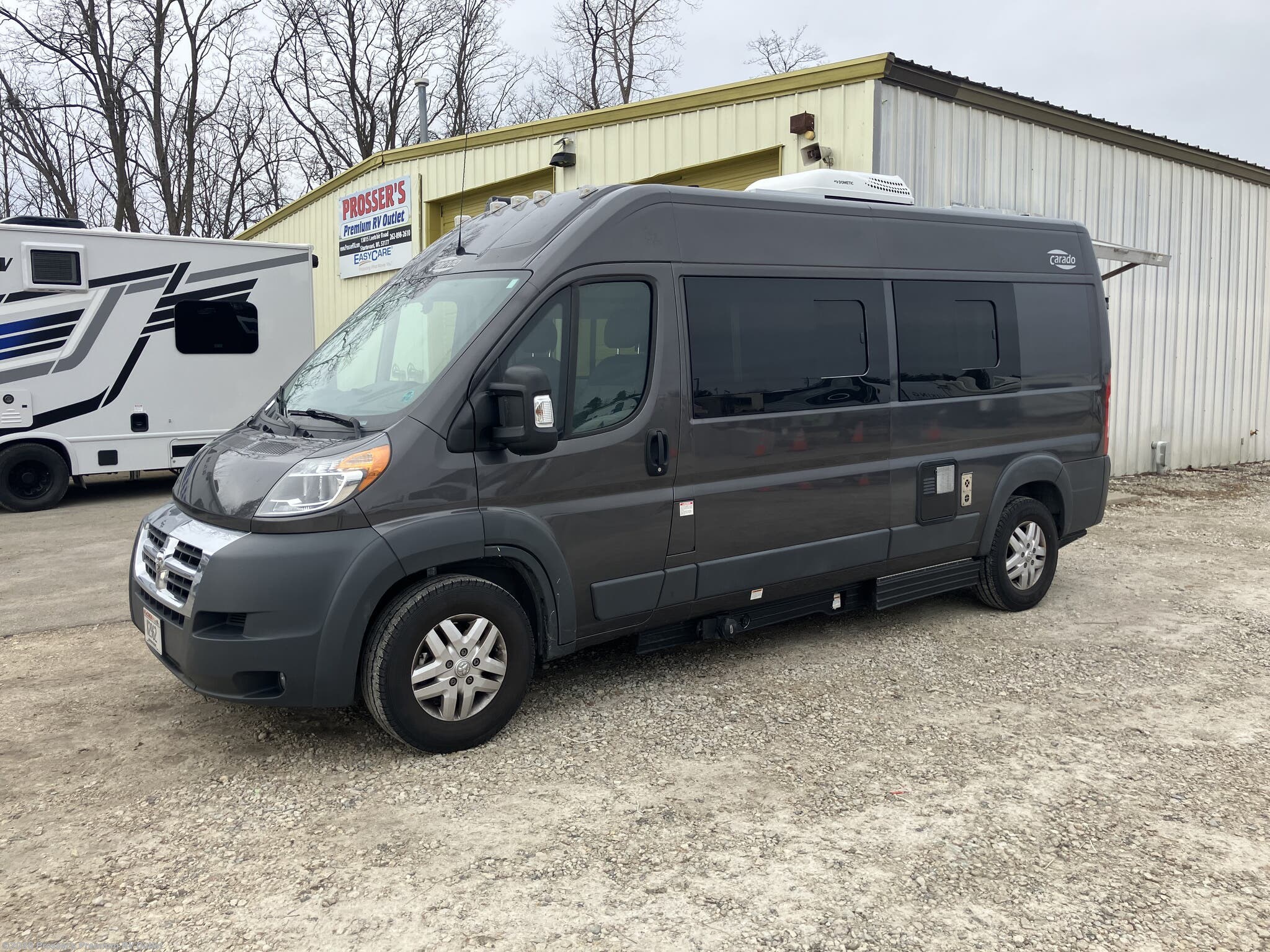 The 2019 Carado Banff is a 19.5-foot Class B camper van built on a RAM ProMaster chassis with a 2018 3.6L Pentastar V6 engine (280 HP). It features a rear power sofa/king bed layout, seating for 4, and, in some models, a 400-amp lithium system, 200W solar, and a 3.5-4 hour runtime AC without a generator. Key specs include 17.6 gal fresh water, 29.5 gal grey water, 23.1 gal black water, 16,000 BTU furnace, and a 3,500 lb towing capacity.Key Highlights