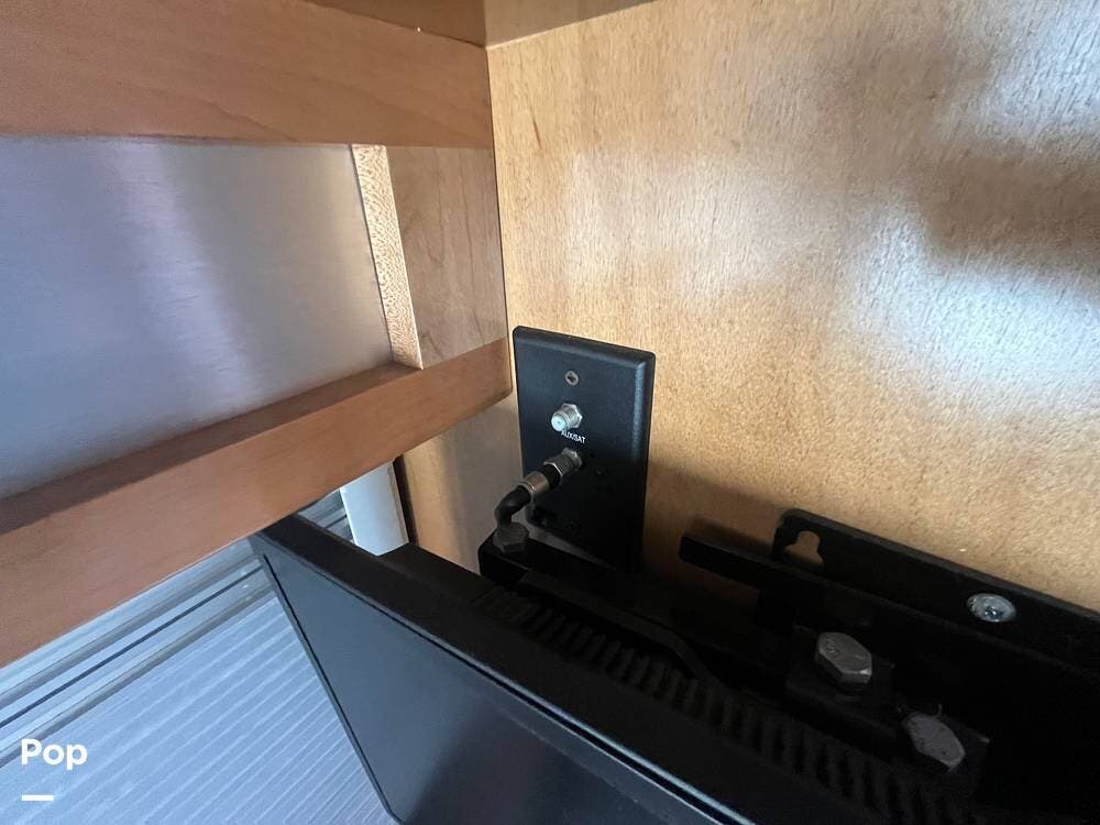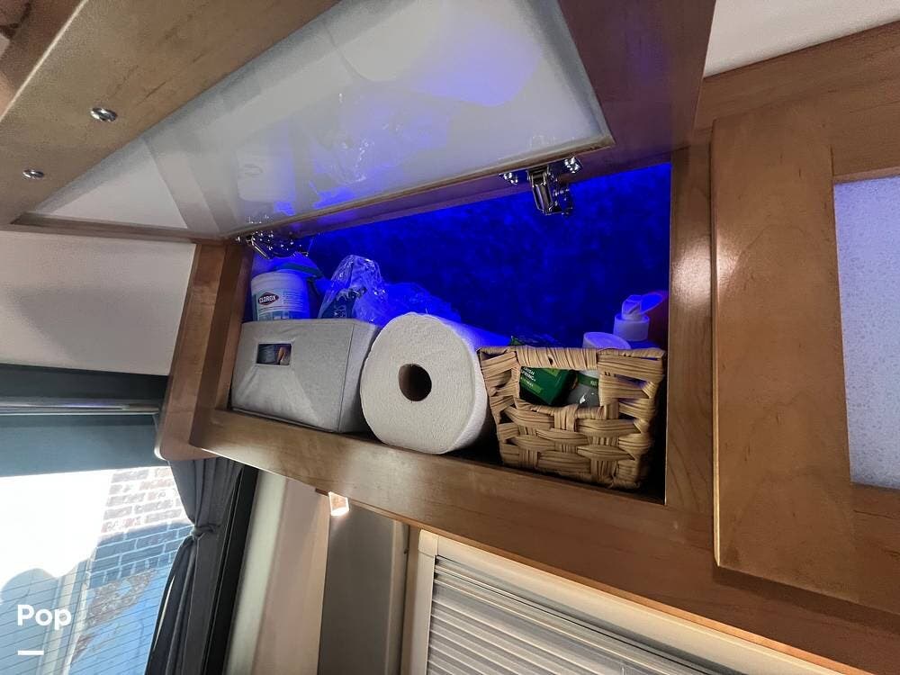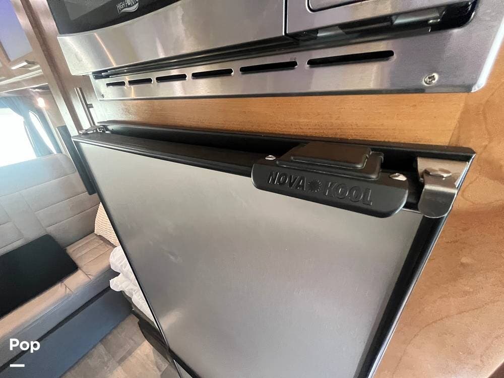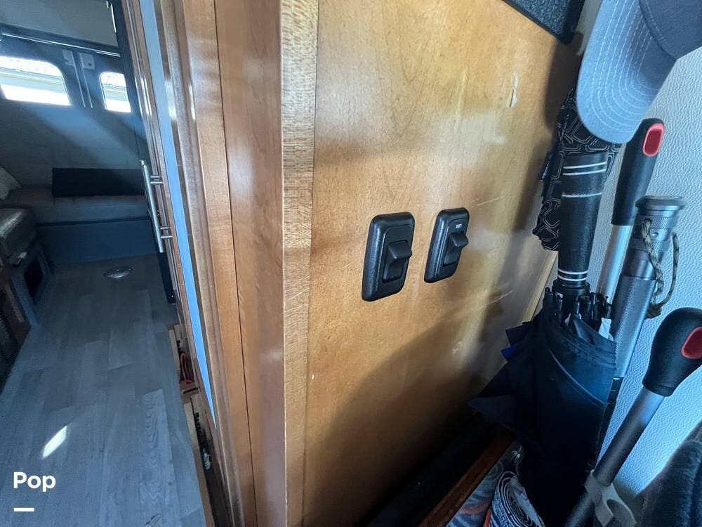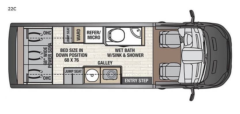 The rear power sofa offers comfortable sleeping accommodations for two and measures 68" x 76" when fully reclined. Additionally, it features two jump seats, which increase seating capacity, making it perfect for hosting guests and enjoying some relaxation time. There is even a wet-bath!