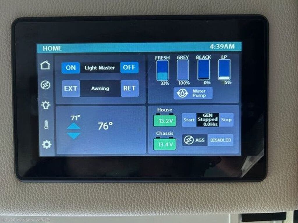 The Li3 system provides 12-volt, USB, and 110 volt power. 3000 watt inverter, second alternator under hood. 600 amp-hours of lithium battery storage, enough for at least two nights and one full day with no hookup (if not using air conditioning). No generator needed, second alternator charges batteries while driving, plus 200 watts solar on roof.