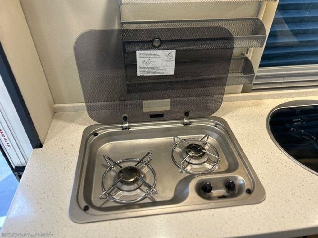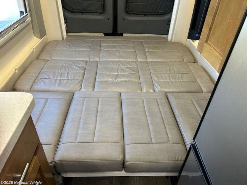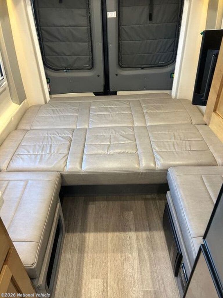 Truma Combi ducted heat and hot water, propane or electric. Upgraded Truma Aventa air conditioner, very quiet. Ceiling vent fan with rain sensor. Push a button to convert couch to bed, sleeps two, several options. Adjustable and removable Lagun table, second table option. Passenger seat swivels to face backwards.