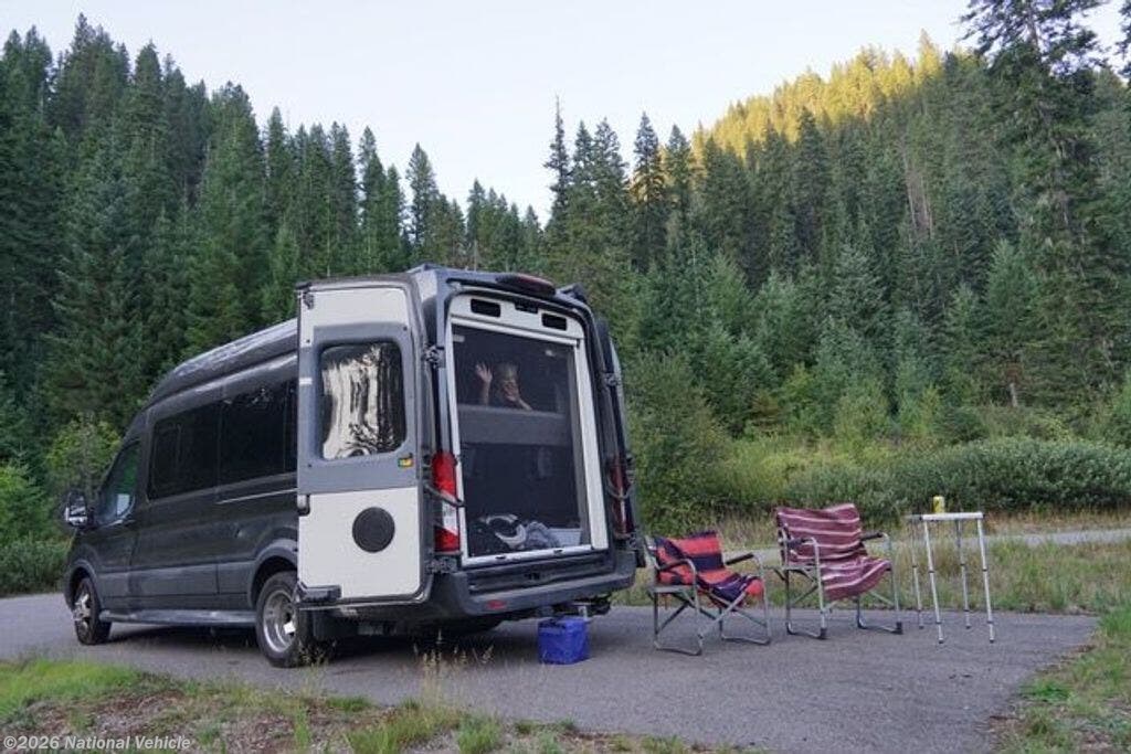 This sleek camper-van is ready for road-trip adventure. No need for full hookups, perfect for boondocking or stealth camping. Ideal for two people and a favorite with solo travelers.
