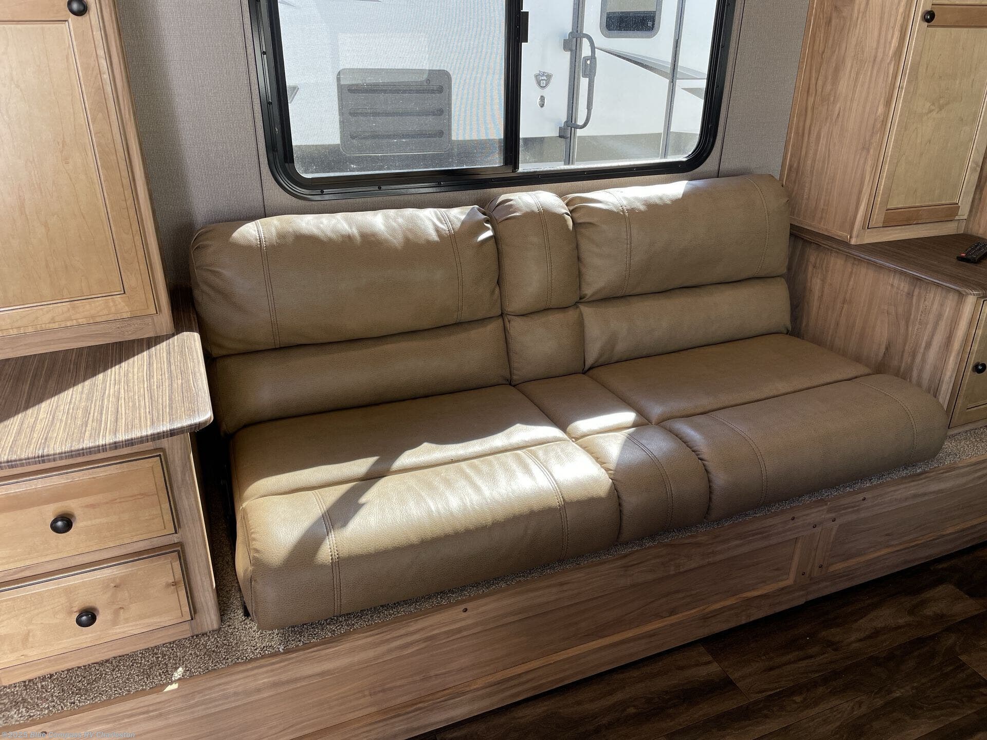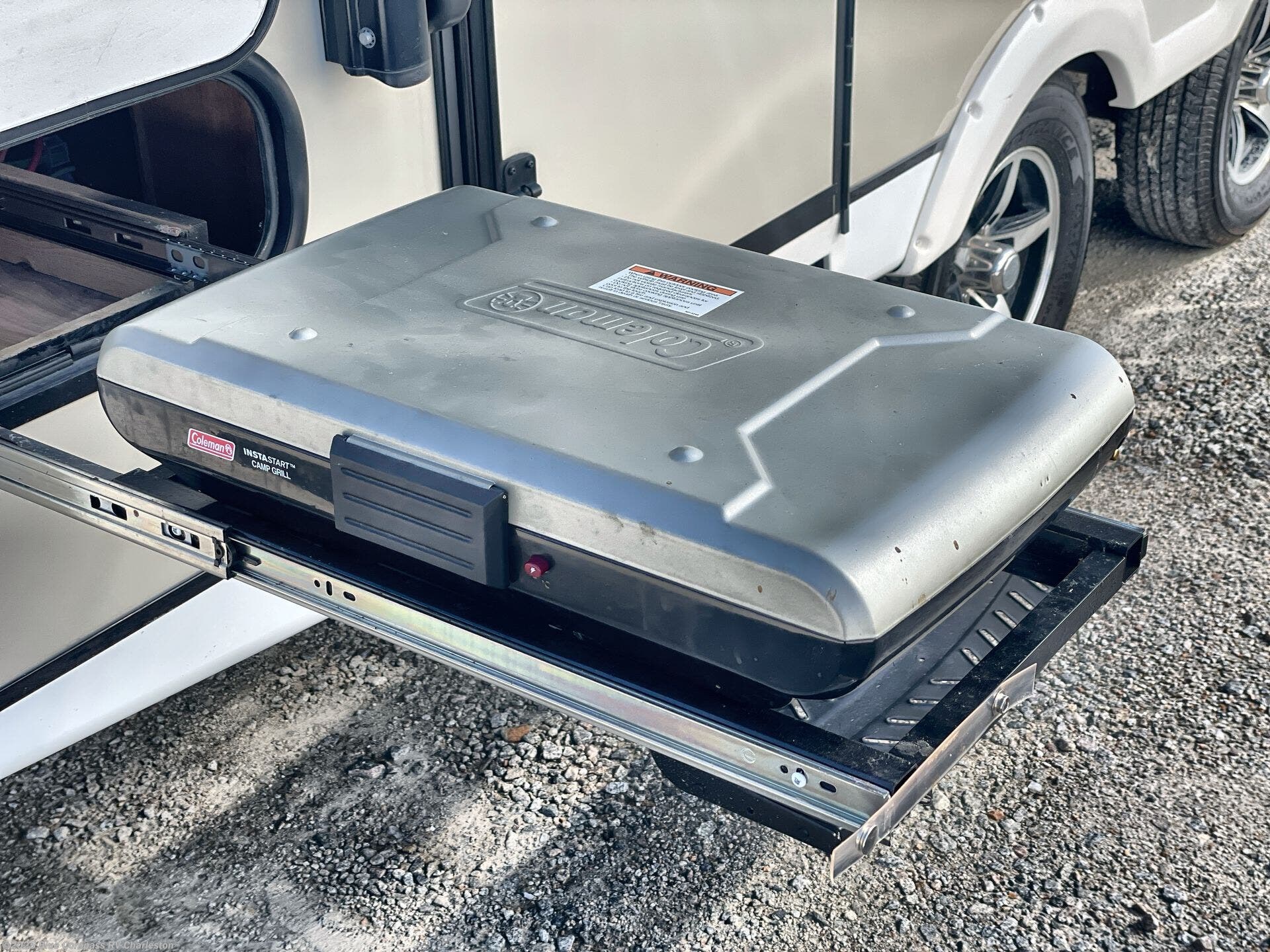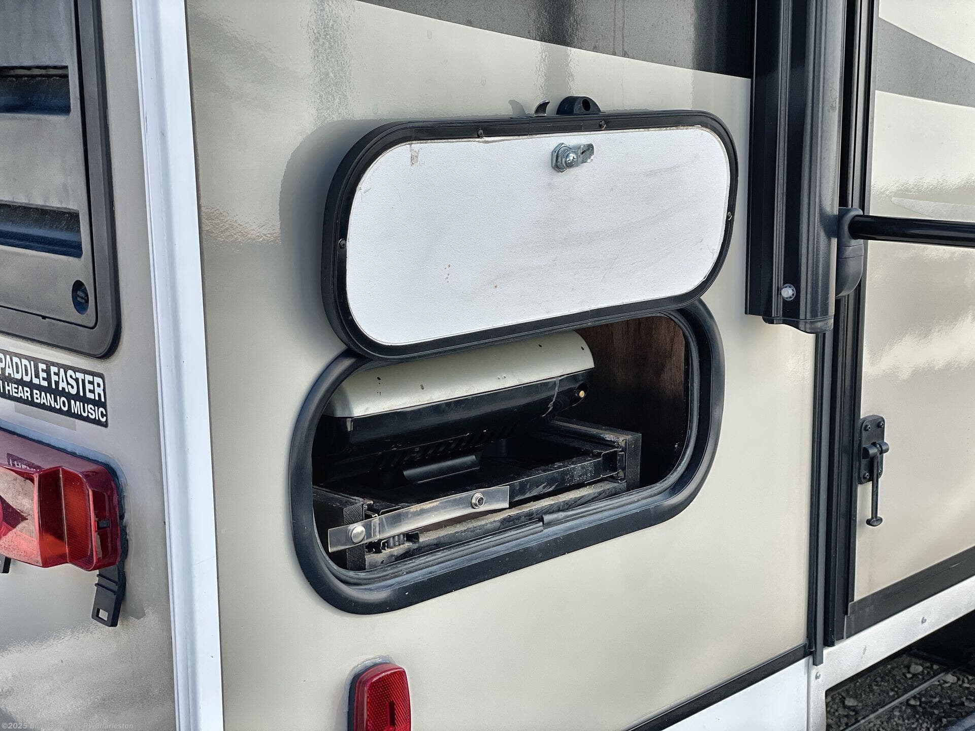 If you're looking for an RV to fit your family of five, this travel trailer with a large slide out will be perfect for you. Within the slide out you'll find a sofa that can also be converted into additional sleeping space. There is a wardrobe with a bench so you can store your shoes and jackets and have a place to sit to put on those hiking boots! The dinette includes a removable resin outdoor table and the rear kitchen has all the amenities you need to prepare a home cooked meal. This unit features a front bedroom with a queen bed and privacy curtains so you can enjoy your own space.