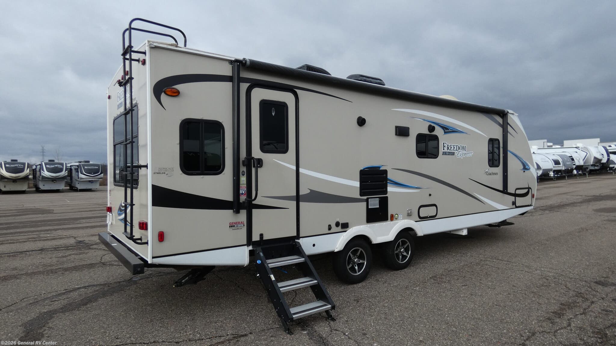 **Coachmen Freedom Express Ultra Lite travel trailer 279RLDS highlights:** * Rear Living Area * U-Shaped Dinette * Private Front Bedroom * Outdoor Camp Kitchen This travel trailer is perfect for a couple or for a small family. You will enjoy your own private bedroom with a queen bed and your guests can sleep on the sofa or u-shaped dinette once folded down for the night. This unit includes an outdoor camp kitchen and a removable resin outdoor table that can go in front of the dinette inside or let it be the kids table outside. The rear living area is open and inviting thanks to the slide out and the full bath features a shower skylight and a shower with a seat. This unit also includes a pantry for your dry goods and an entertainment center with an LED TV! With any Freedom Express Ultra Lite travel trailer by Coachmen you will appreciate of ease of towing behind your family vehicle. All the tanks are located under the floor to lower the center of gravity for increased storage capacity and improved handling down the road. Inside, you'll enjoy features such as, LED lighting throughout, Congoleum Designer Carefree Flooring, an LED TV, plus a 6 cu.ft. double door refrigerator to name a few. The pass through storage with an LED light strip allows you to easily bring along those larger camping items, plus there is an electric awning with LED lights outdoors as well as an exterior shower station to wash off your hiking boots. Come see how you have the freedom to explore in a Freedom Express Ultra Lite travel trailer today!