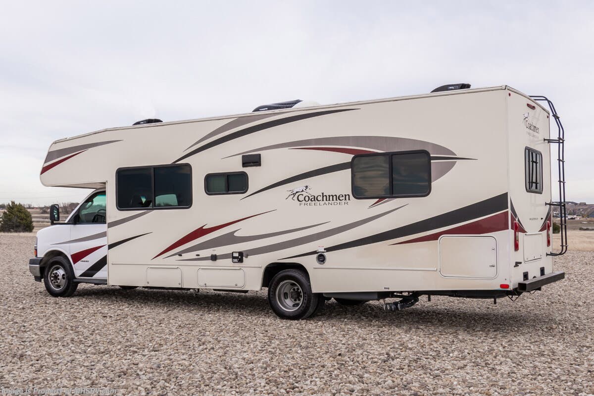 Used Coachmen RV for sale – 2019 Coachmen Freelander 27QB is approximately 30' 0” feet in length, 111,792 miles and features equalizer systems 4 point stabilizers, Chevrolet chassis, Chevrolet 6.0 gas engine, tilt steering wheel, power windows, power door lock, water manifold, patio awning, pass through storage, LED running lights, black tank flush, exterior TV, ladder, leather seating, sleeper booth, 3 burner gas range with oven, overhead loft and much more. For more details on this unit, our full inventory, brochures, window stickers, videos, photos, and customer reviews, visit or call 800-335-6054 for the Texas location or 334-288-0331 for our Alabama location. At Motor Home Specialist, we DO NOT charge any prep or orientation fees like you will find at other dealerships. Read Thousands upon Thousands of 5-Star Reviews at and See What They Had to Say About Their Experience at Motor Home Specialist. WHY PAY MORE? WHY SETTLE FOR LESS?
