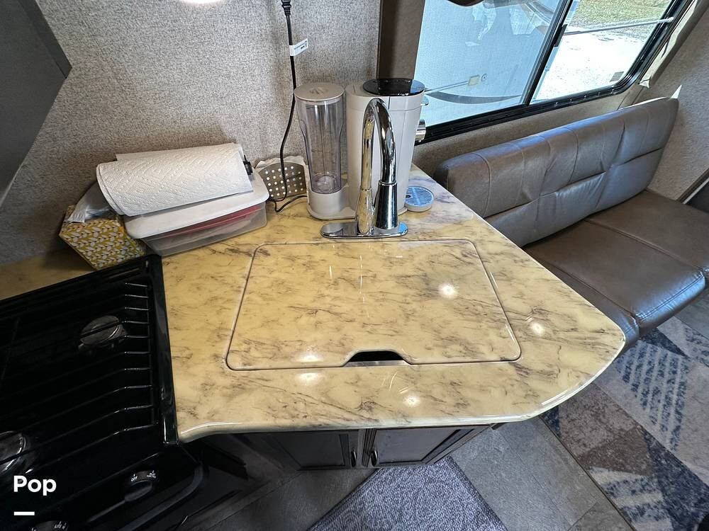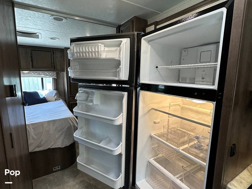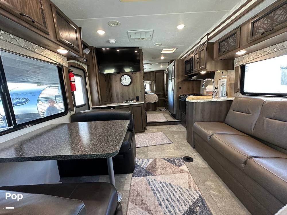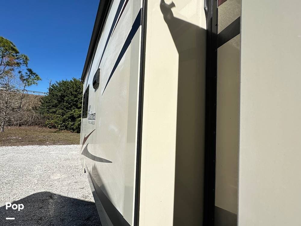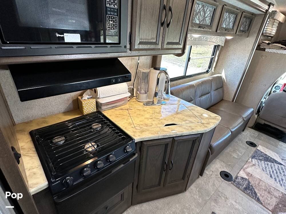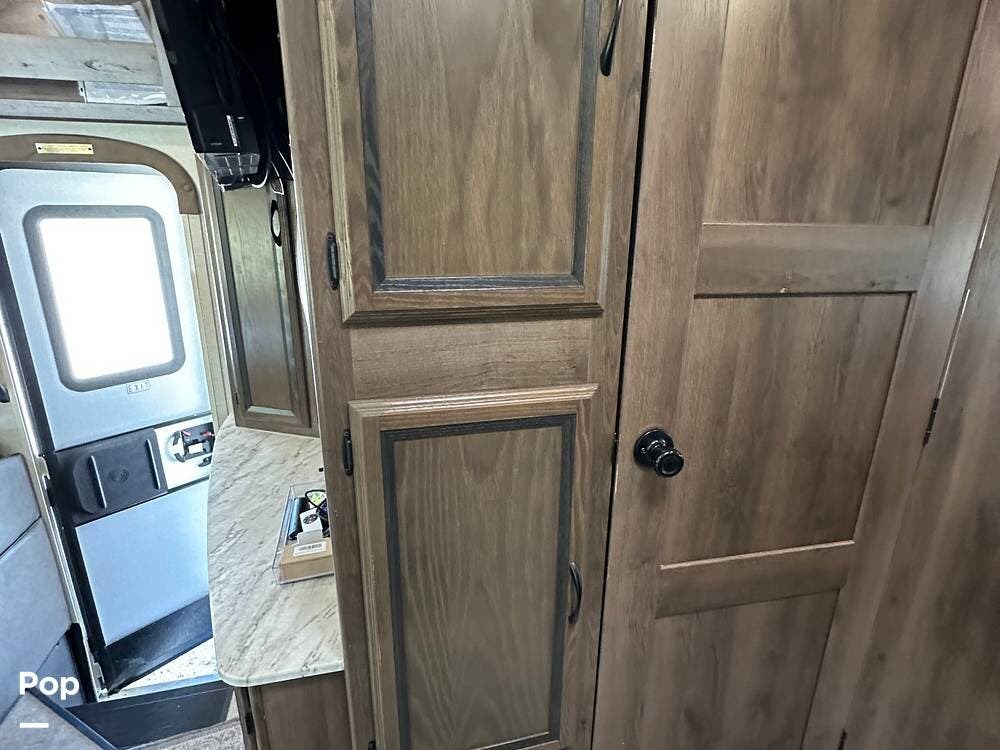 Outside, this Freelander Premier Package includes many features such as, stabilizer jacks. air-assist rear suspension, high-gloss color-infused fiberglass sidewalls, and a molded fiberglass front wrap. It also has a large power patio awning and an exterior entertainment center with a sound system and TV. LED lighting, solar panel connection port, and 7,500-lb. tow hitch with a 7-way plug, and more! Seller recently added a 3 way camera system (rear, passenger and driver side views) for added visibility and safety on the road.