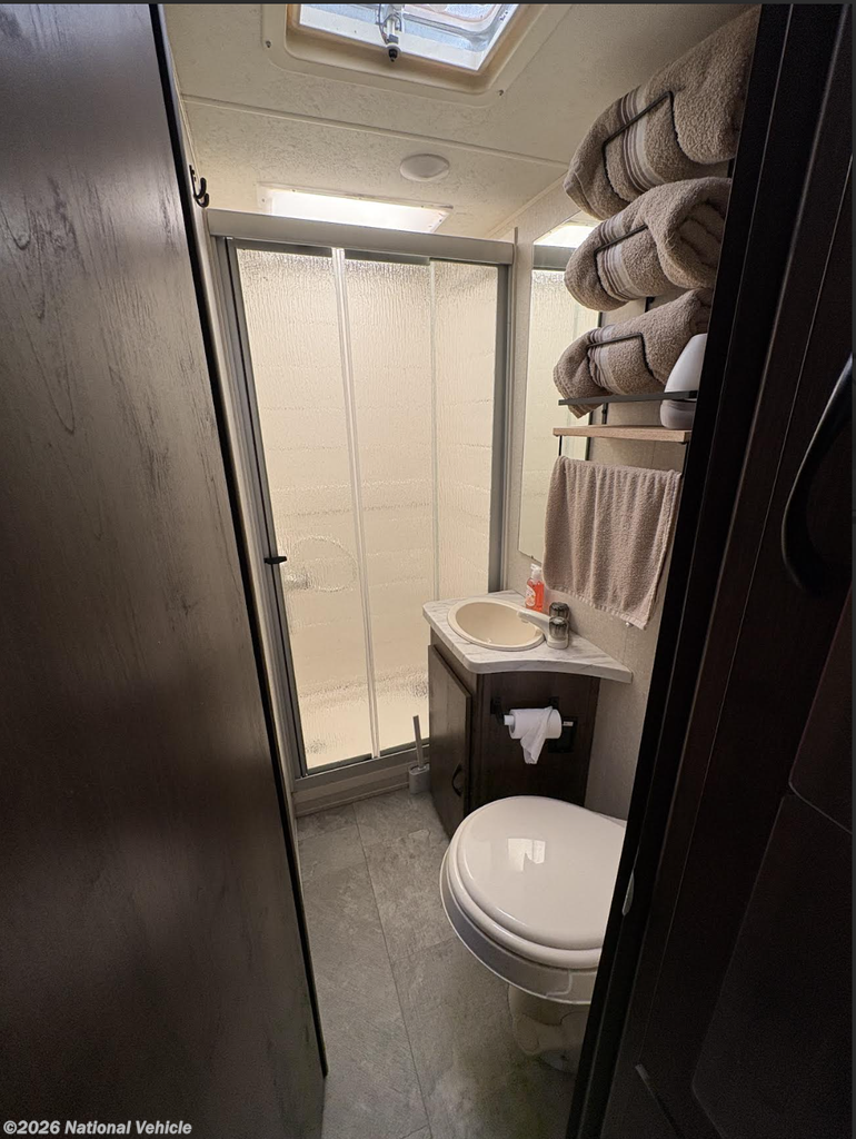 Skip the campground bathhouse ? this coach features a full bathroom with shower, vanity, and toilet. Clean, convenient, and ready for extended stays.