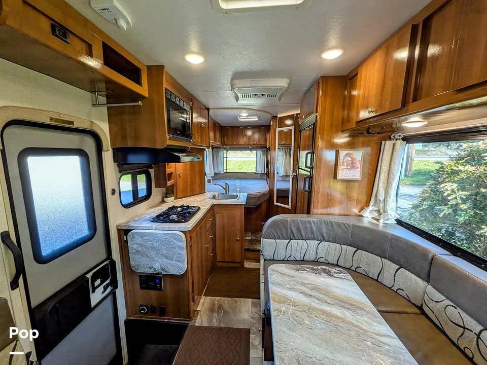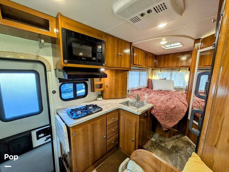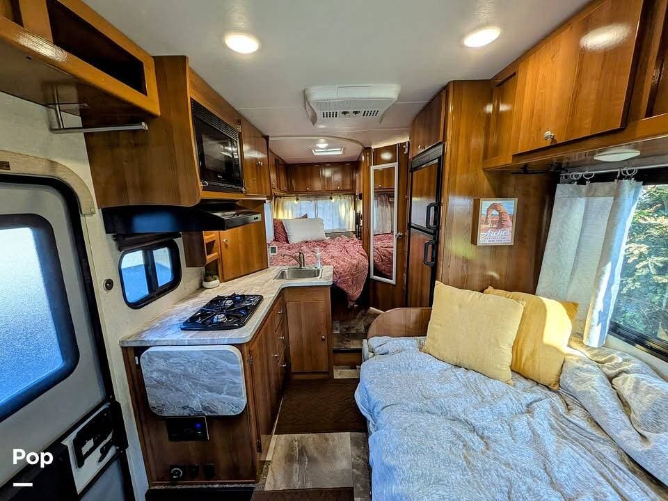 The cab is designed for driver convenience with a back-up camera, cruise control, and comfortable captain's chairs, making this 24-foot Leprechaun the ultimate turnkey solution for couples or small families looking to explore the open road.