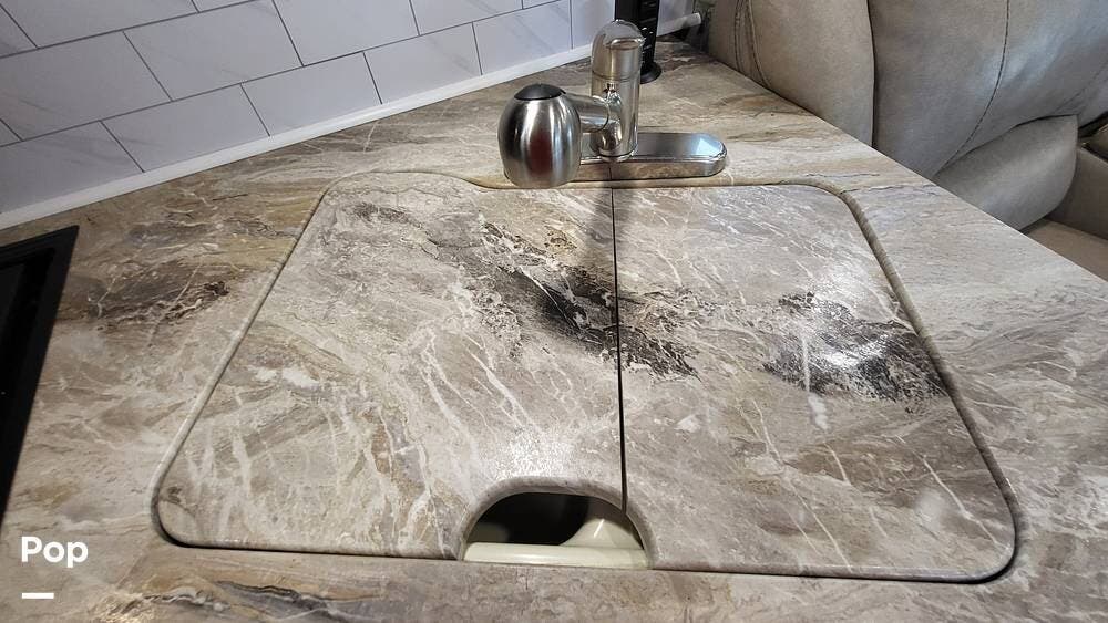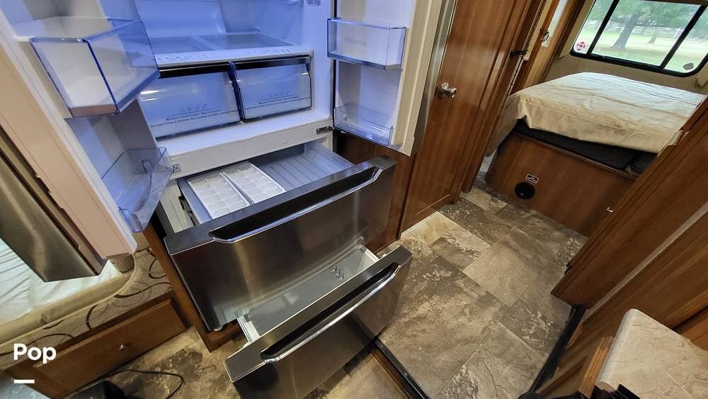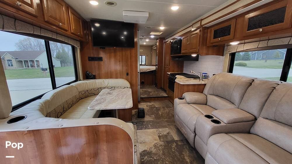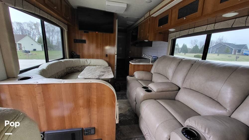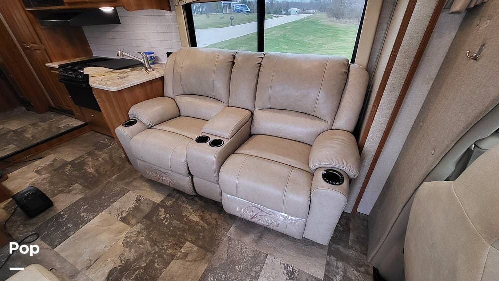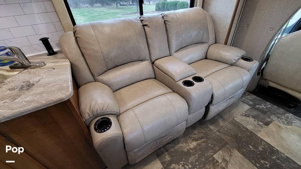 Many upgrades include large recliner sofas with heat, a leveling system, an upgraded 4-door refrigerator, and a washer/dryer combo.