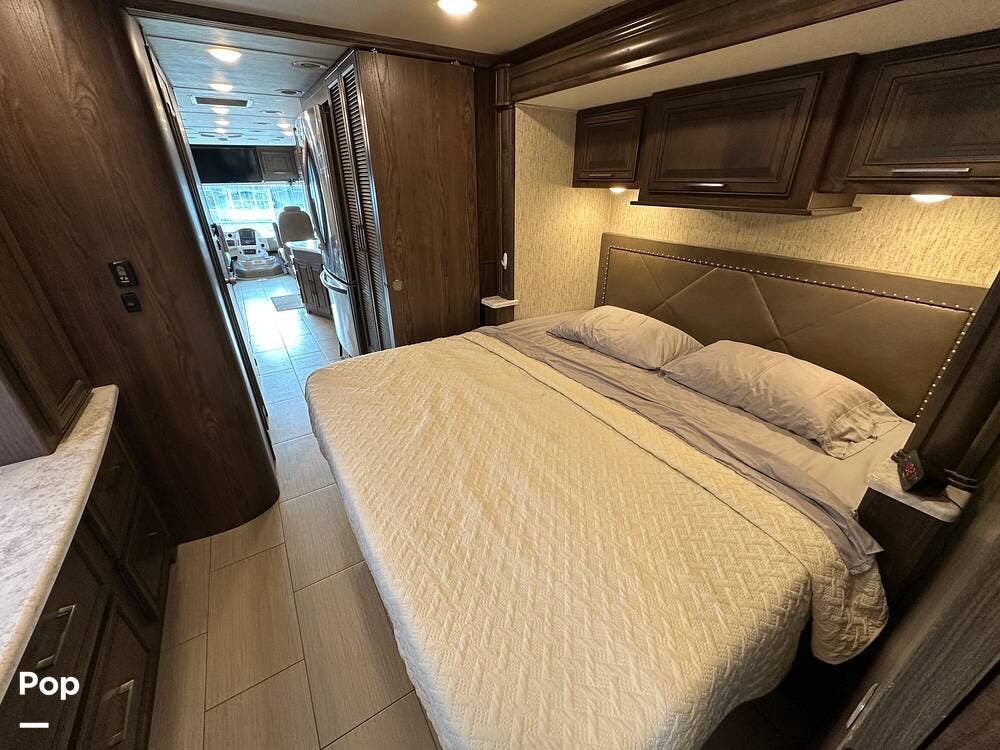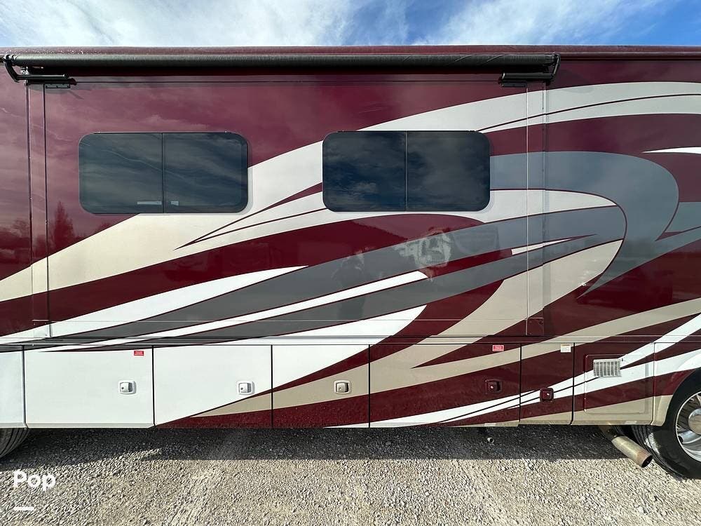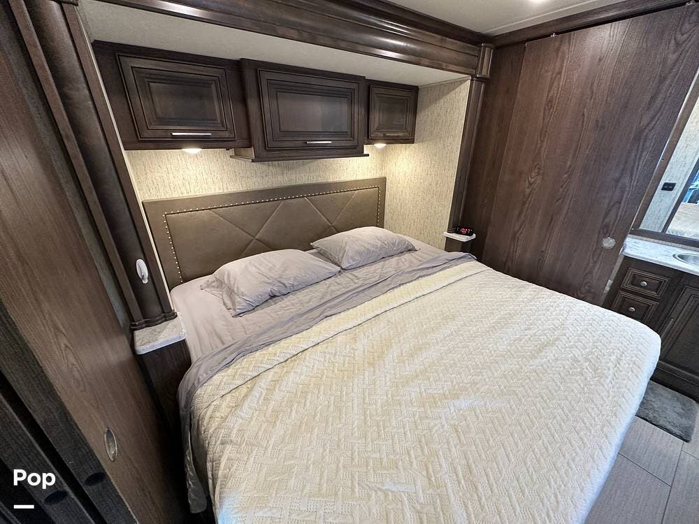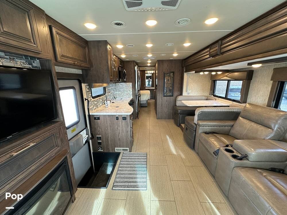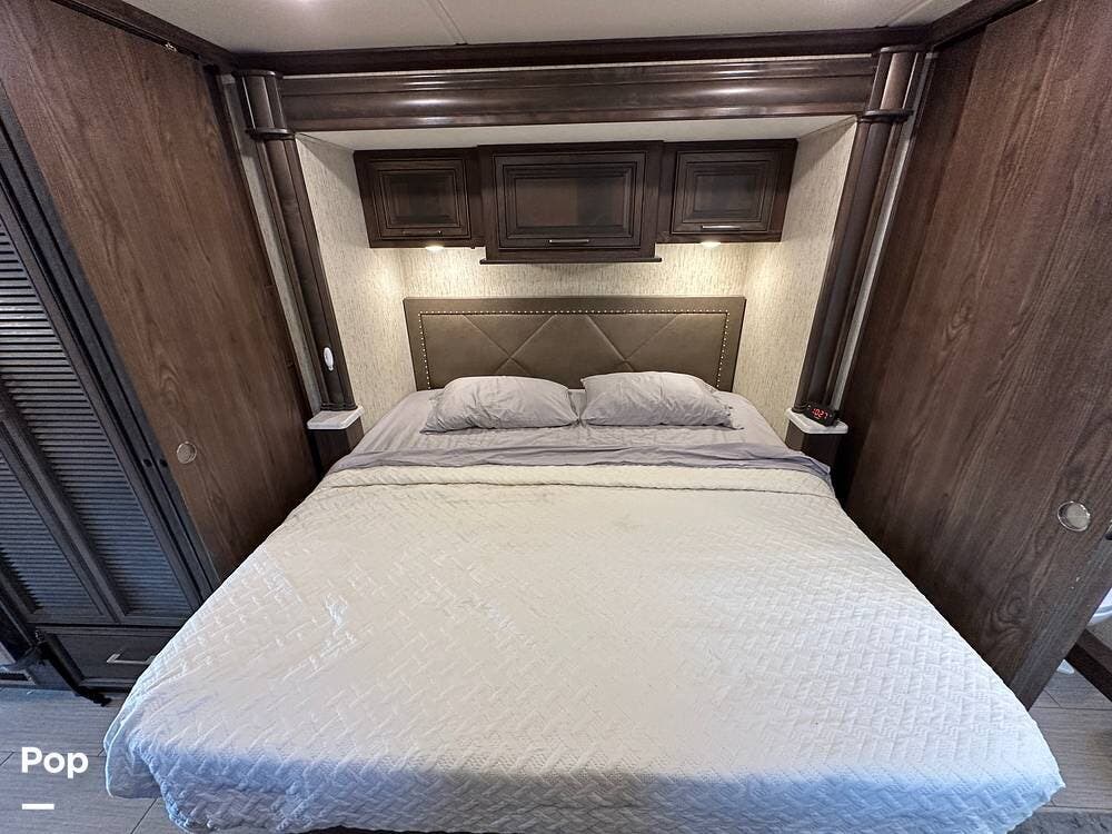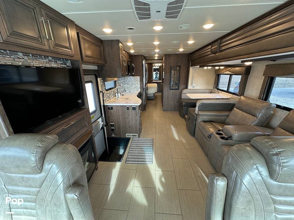 Dual A/C units and a 5.5kW Onan generator round out the package. The 37TB is well-regarded for its smart layout, smooth ride, and features that hit the sweet spot for both full-timers and long-haul travelers.