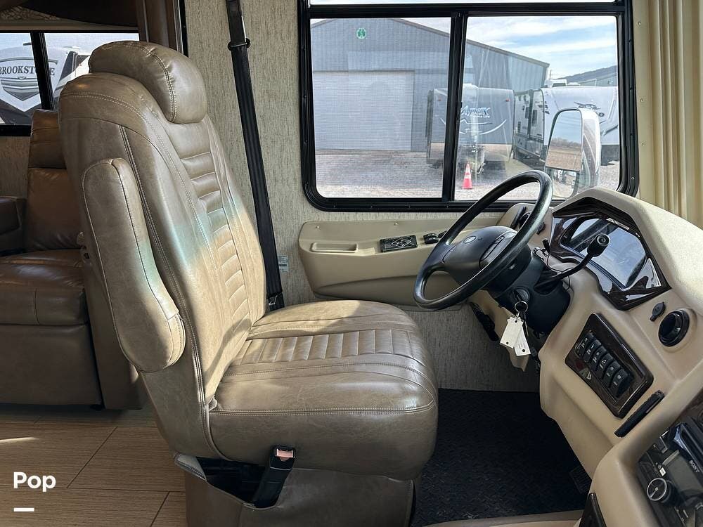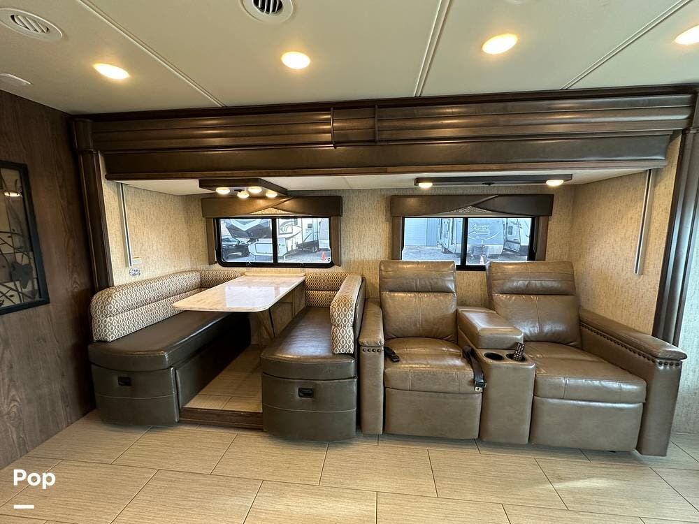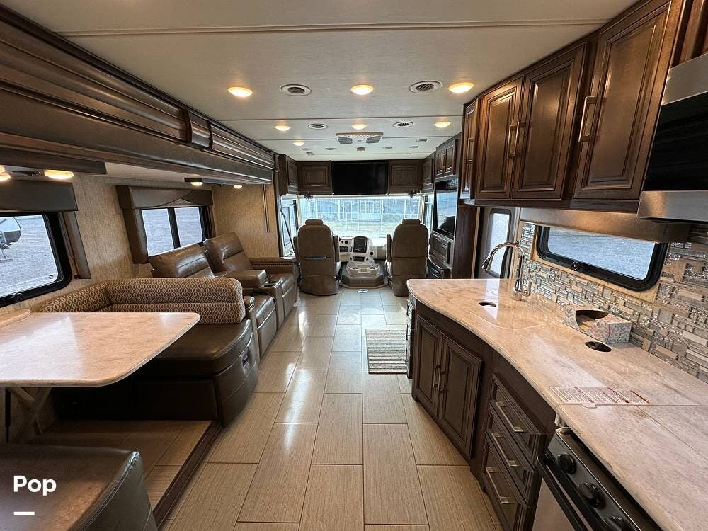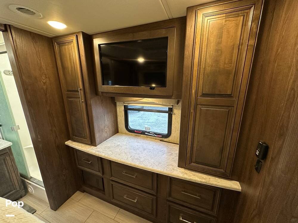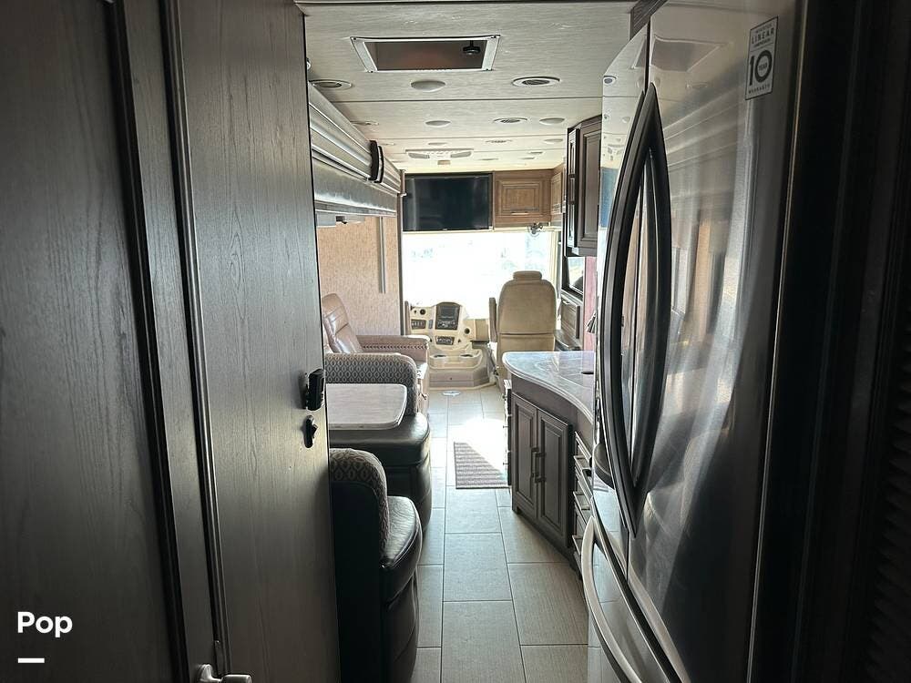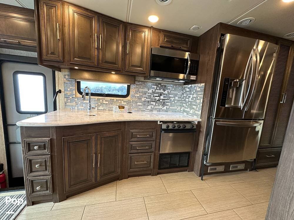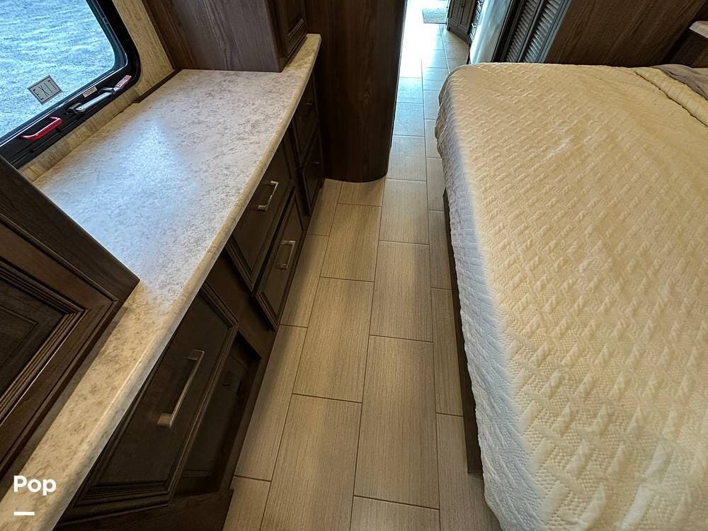 Dual A/C units and a 5.5kW Onan generator round out the package. The 37TB is well-regarded for its smart layout, smooth ride, and features that hit the sweet spot for both full-timers and long-haul travelers.