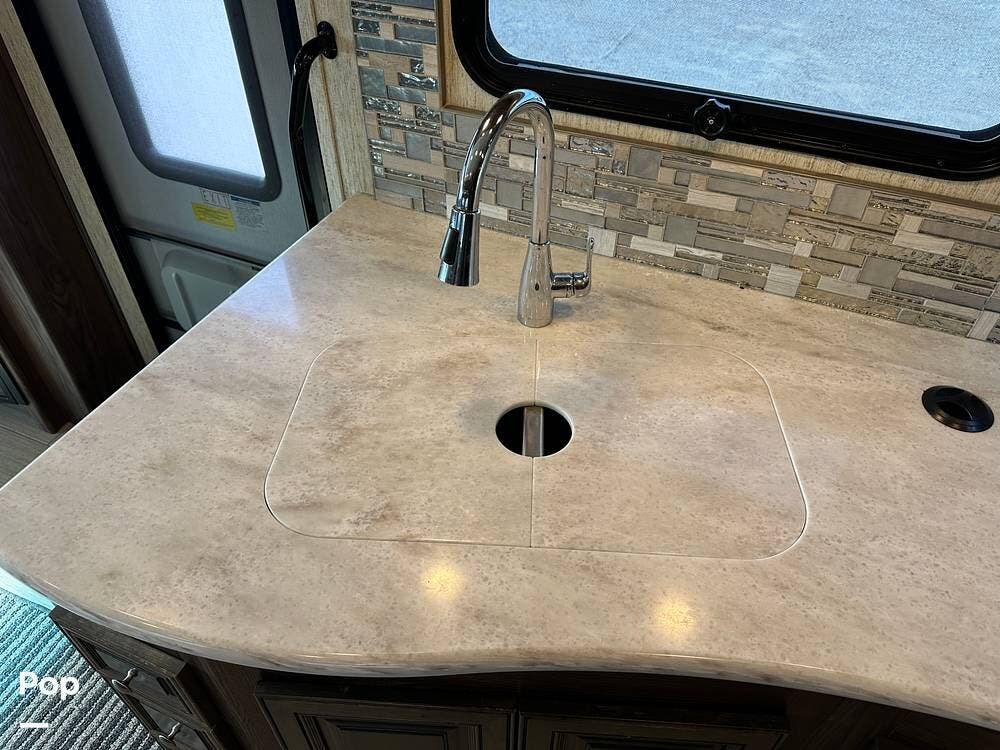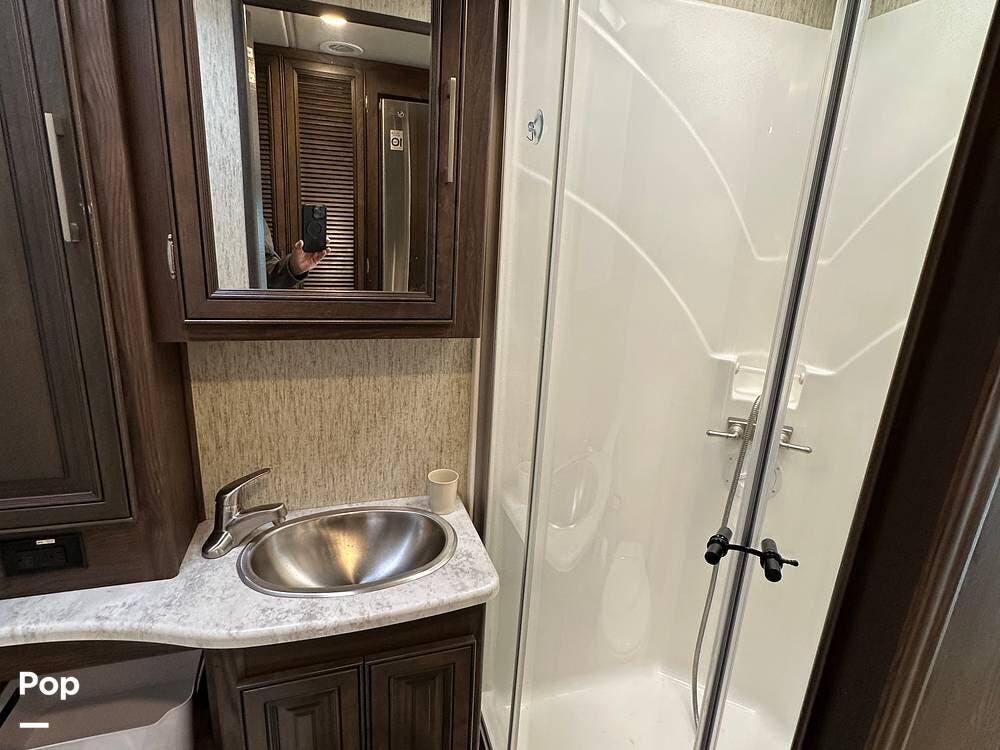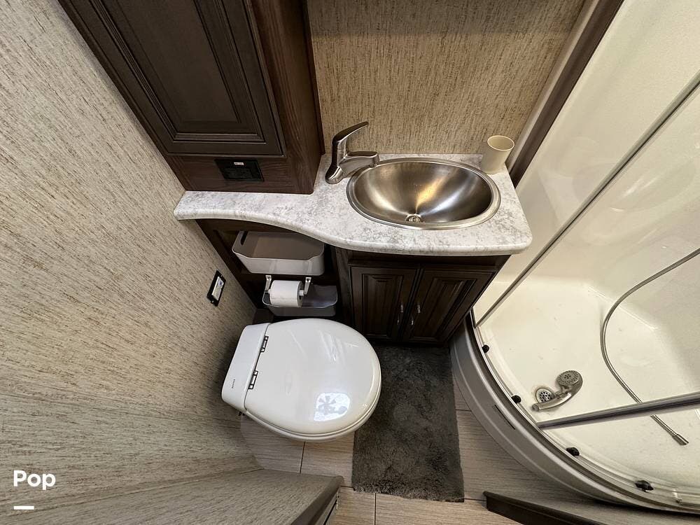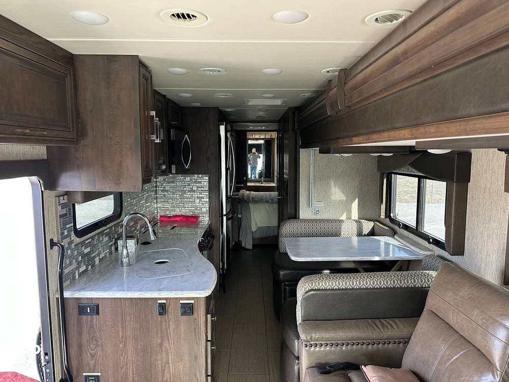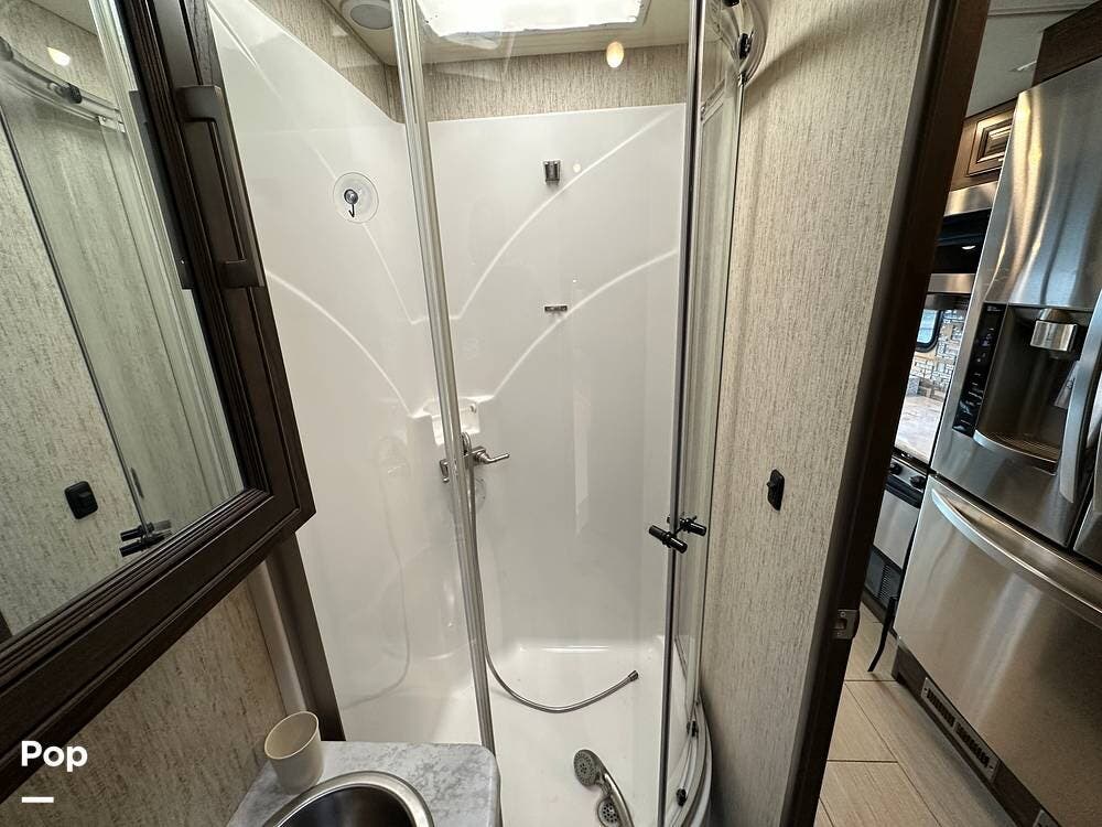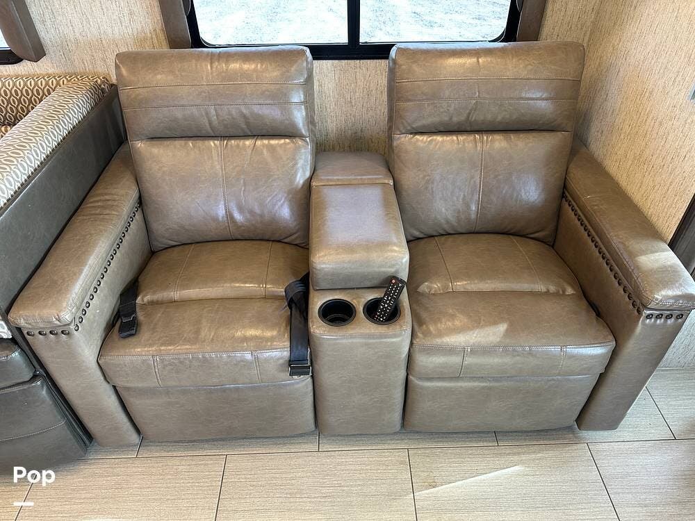 Dual A/C units and a 5.5kW Onan generator round out the package. The 37TB is well-regarded for its smart layout, smooth ride, and features that hit the sweet spot for both full-timers and long-haul travelers.