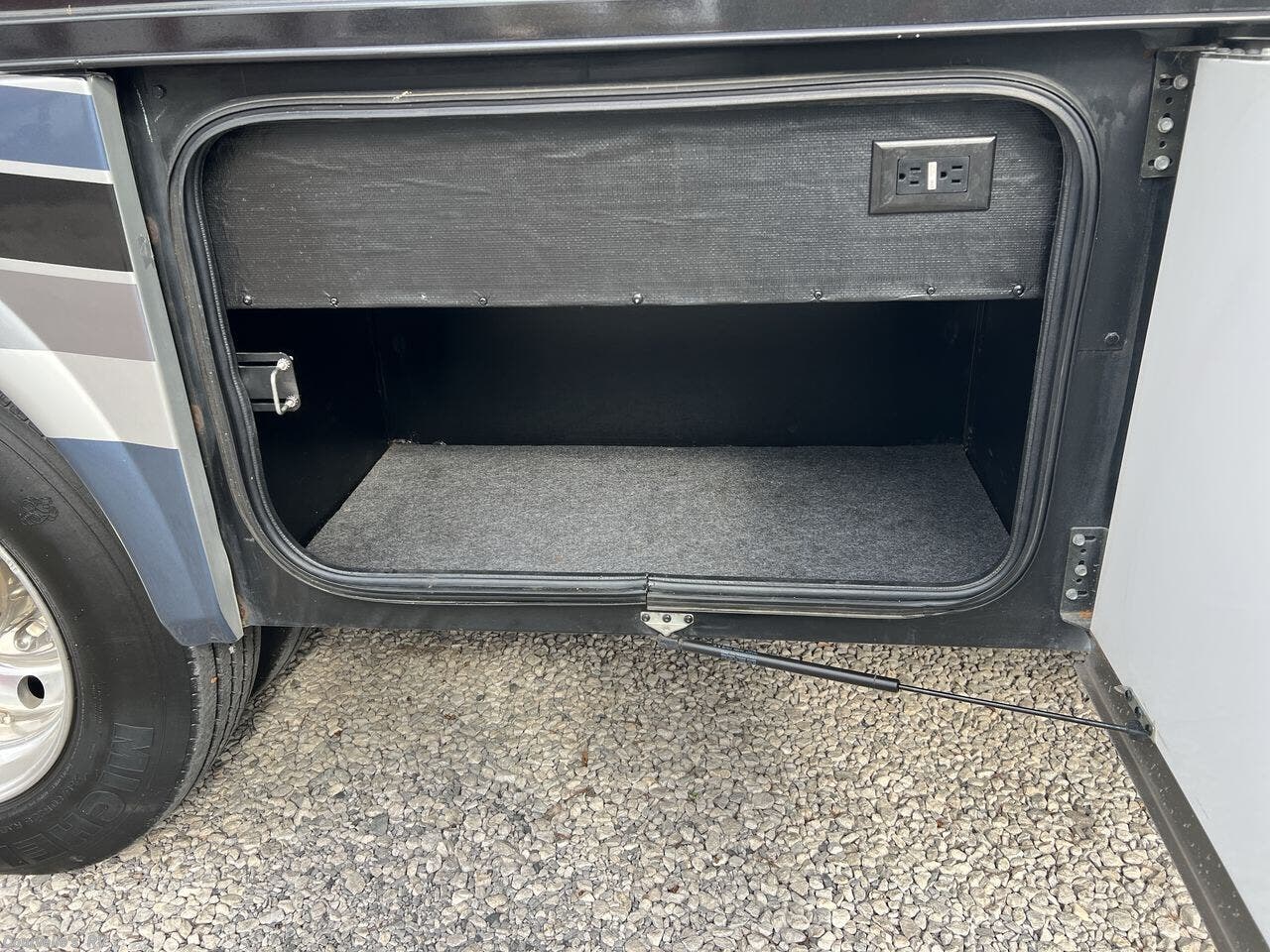 Automatic Leveling Jacks, Backup Monitor, Black Tank Flush, Detachable Power Cord, Exterior Speakers, External Shower, Fiberglass Sidewalls, Full Body Paint, Hitch, Ladder, Outside Entertainment Center, Pass Thru Storage, Power Awning, Power Entrance Step, Power Roof Vent, Screen Door, Second Roof A/C, Side View Cameras, Skylight, Slam Latch Baggage Doors, Slideout, Slide-out Awning, Tinted Windows -