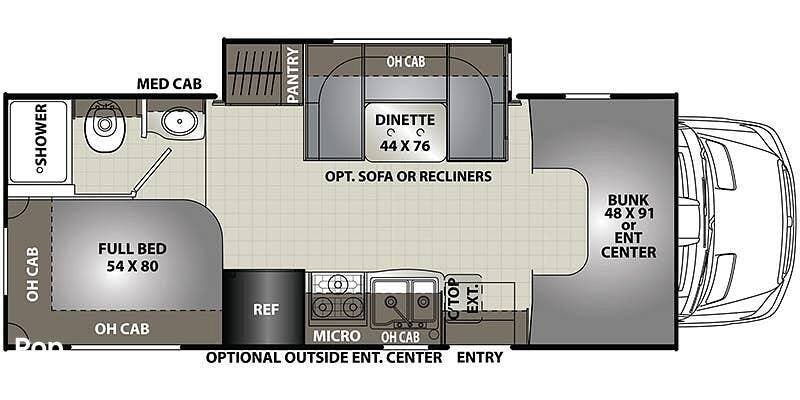 Cook up your favorite meals with ease in the well-appointed kitchen. The Prism 2150 comes with a refrigerator, microwave, and a two-burner cooktop, ensuring you have everything you need to whip up culinary delights on the go.