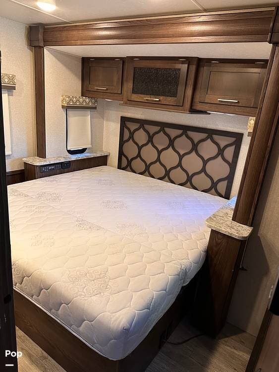 Step inside the Pursuit and enjoy the Slate Cherry hardwood cabinets, doors, and trim. Entertainment is taken to the next level with three TVs that include a 40" LED TV in the main cabin, and a wall-mounted TV in the bedroom for those private movie nights, complemented by an Outside Entertainment Center perfect for those great tailgating parties!