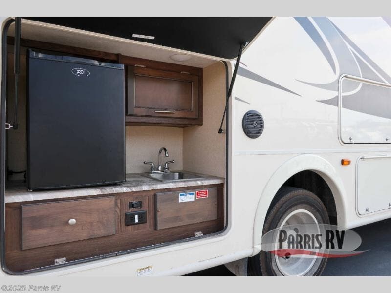 If you enjoy the finer things while away from home then take a look at this Coachmen Pursuit Precision class A gas coach to find luxury just like at home. Model 29SS provides the convenience of a full bath, and a queen-size bed for a good night's rest. There is a large single full wall slide out beginning in the main living area and continuing to the rear bedroom providing more walking around space throughout. You have the choice of watching your favorite shows on one of the two interior 32" LED TVs, or outside on the exterior 32" LED TV. There is a power drop-down overhead bunk in front, as well as extra sleeping space provided by the furniture. You will love the self-closing ball bearing drawers guides throughout, and the computer workstation with USB, 12V, and 120V charging capability. Don't forget about the exterior kitchen when you want to enjoy the great outdoors while cooking, plus more!
