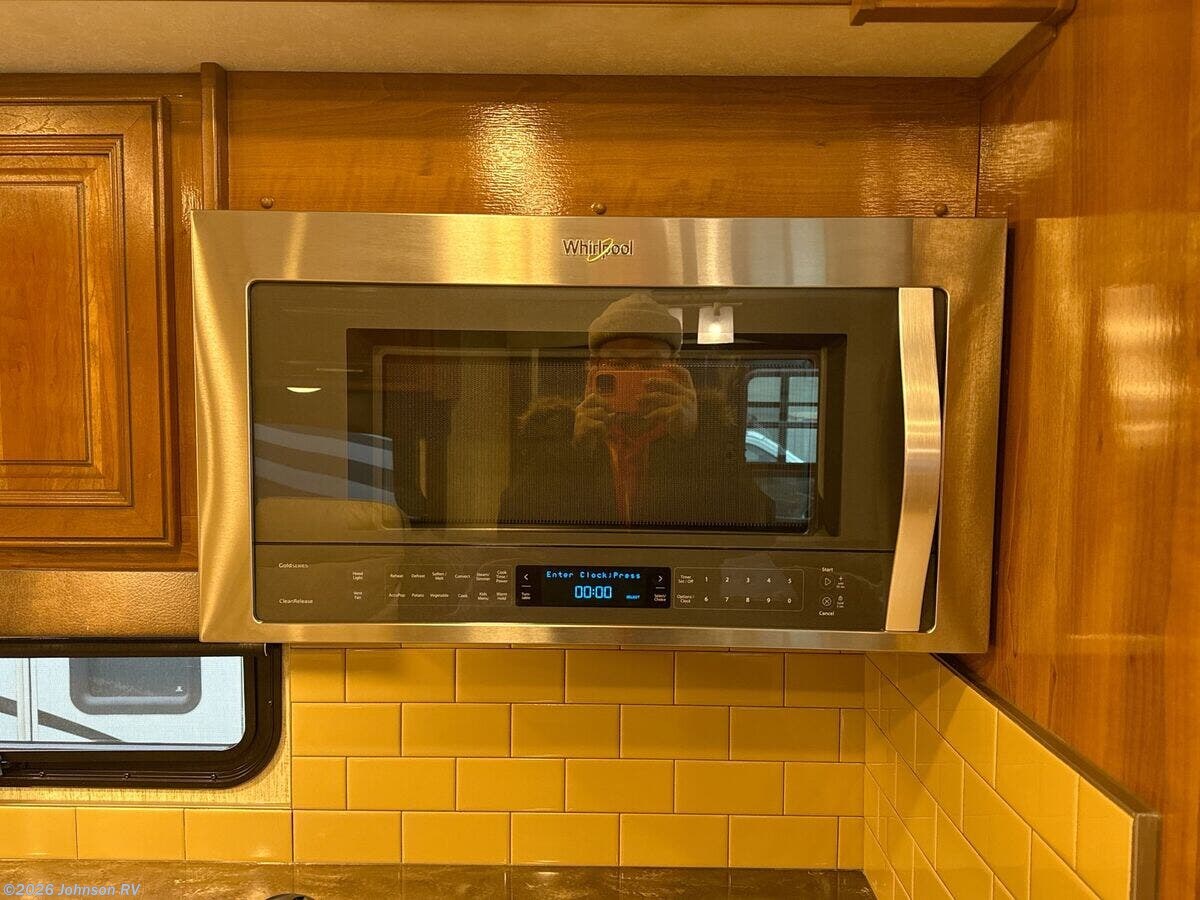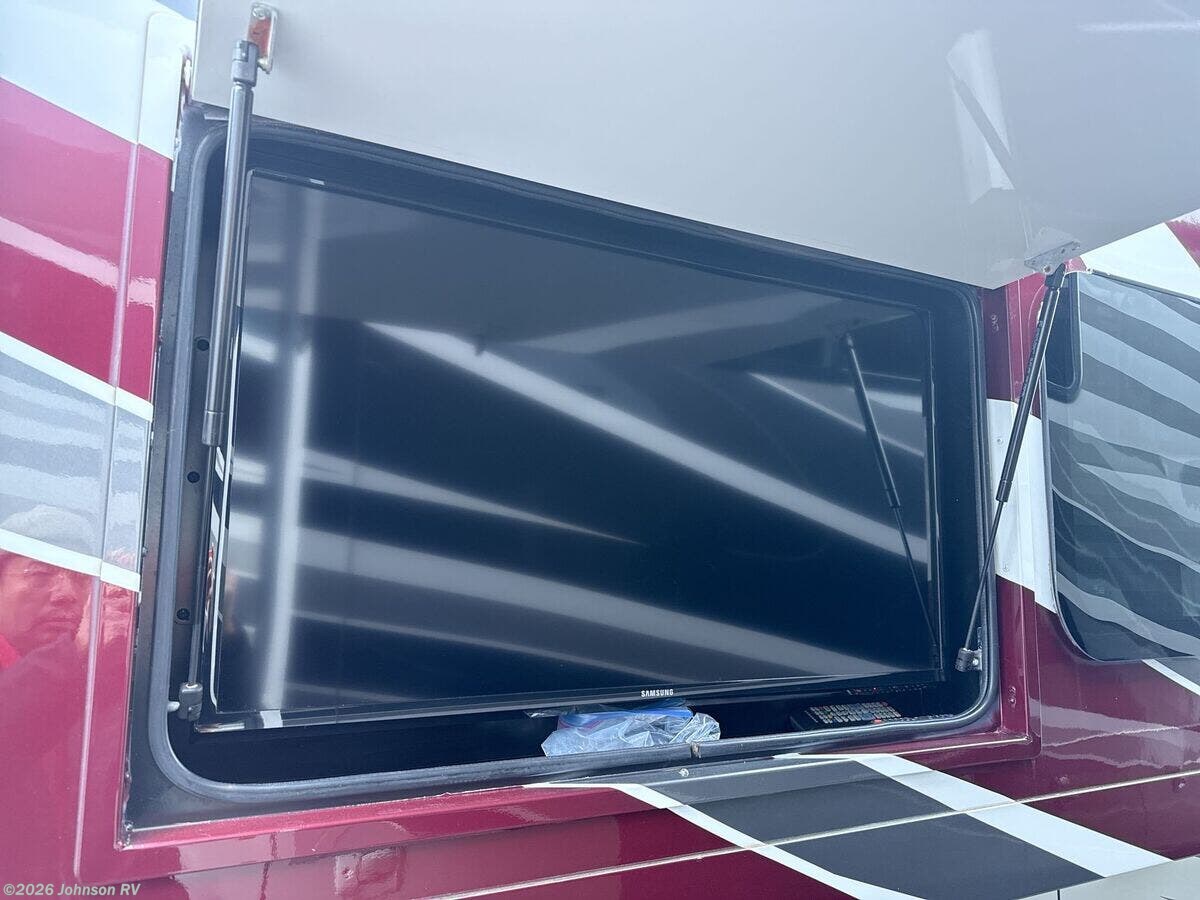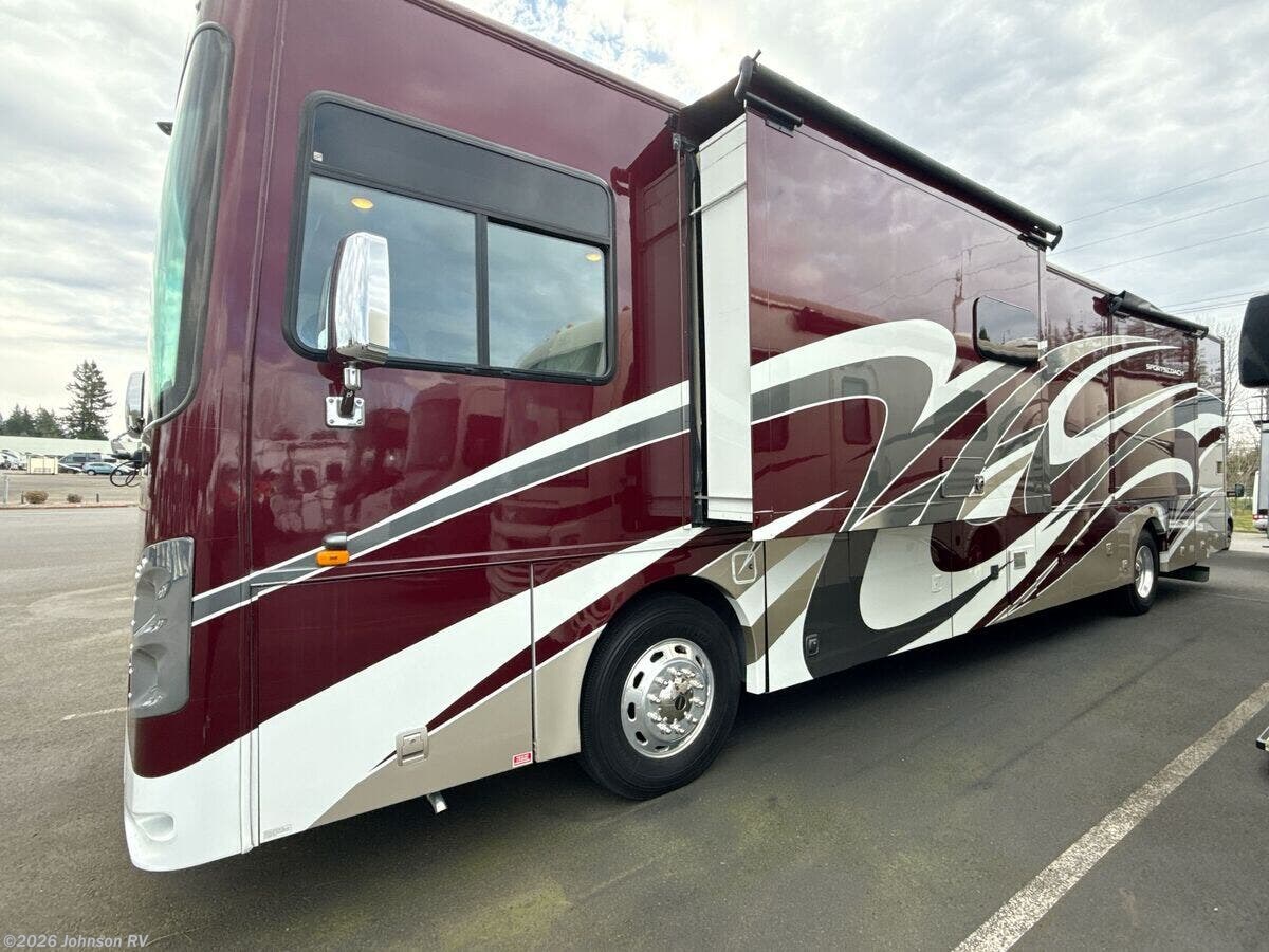 Features Include: Dual Fuel Fills, Air Suspension, Air Brakes, Radial Tires, Power Privacy Shade, Manual Side Shades, Air Horn, Intermittent Wipers, Power Patio Awning, Power Step Cover, LED Lighting, Padded Vinyl Ceiling, Tile Flooring, Solar Privacy Shades, Entertainment Center, Sofa Bed (vbm), Dream Dinette, Stainless Appliances, Convection Microwave, Systems Center, Zone Thermostat, Charging Station, King Jack TV Antenna, WiFi Ranger, Sleeping, Bedroom TV, Porcelain Toilet, 50-Amp Service Cord, 8.0 Diesel Generator, Auto Generator Start, 2000w Inverter, Dual 13.5k A/C, Fiberglass Roof
