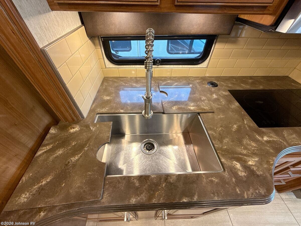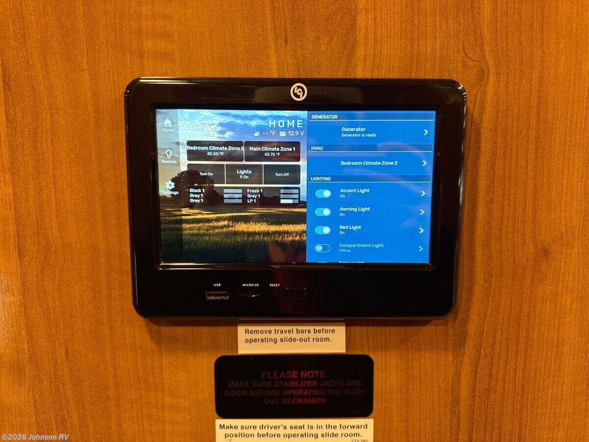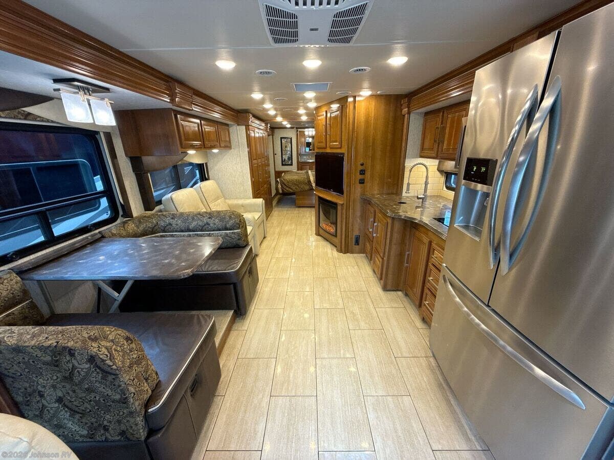 Features Include: Dual Fuel Fills, Air Suspension, Air Brakes, Radial Tires, Power Privacy Shade, Manual Side Shades, Air Horn, Intermittent Wipers, Power Patio Awning, Power Step Cover, LED Lighting, Padded Vinyl Ceiling, Tile Flooring, Solar Privacy Shades, Entertainment Center, Sofa Bed (vbm), Dream Dinette, Stainless Appliances, Convection Microwave, Systems Center, Zone Thermostat, Charging Station, King Jack TV Antenna, WiFi Ranger, Sleeping, Bedroom TV, Porcelain Toilet, 50-Amp Service Cord, 8.0 Diesel Generator, Auto Generator Start, 2000w Inverter, Dual 13.5k A/C, Fiberglass Roof
