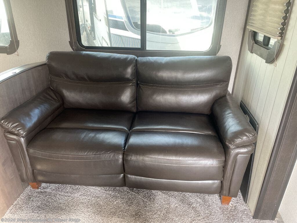 Stainless Steel Microwave Gas Oven w/ Glass Top Range Cover Stainless Steel Farmhouse Sink w/ Cover - Single Bowl Solid Surface Countertops in Kitchen 10 FT3 Refer or (Optional 8 FT3 Gas/Electric) Pocket Doors Separating Bedroom (VBM) Skylight In Shower Detector for Smoke, Carbon Monoxide, and LP Gas Fire Extinguisher LED Interior Lights/Exterior Lights USB Ports: Bedroom, Main Area, and Bunks Connexx Entertainment TV w/ Soundbar Decorative Bedspread Tri-Fold Sleeper Sofa King Bed Bed Base with Shoe Storage & Pet Station XL Jumbo Booth w/ Panoramic Landscape Window Drawers Below Booth Flush Floor - Main Slide: Boat Flooring Heated Tank Pads: On - 45° Off - 67° (N/A on Single Axle) Night Shades