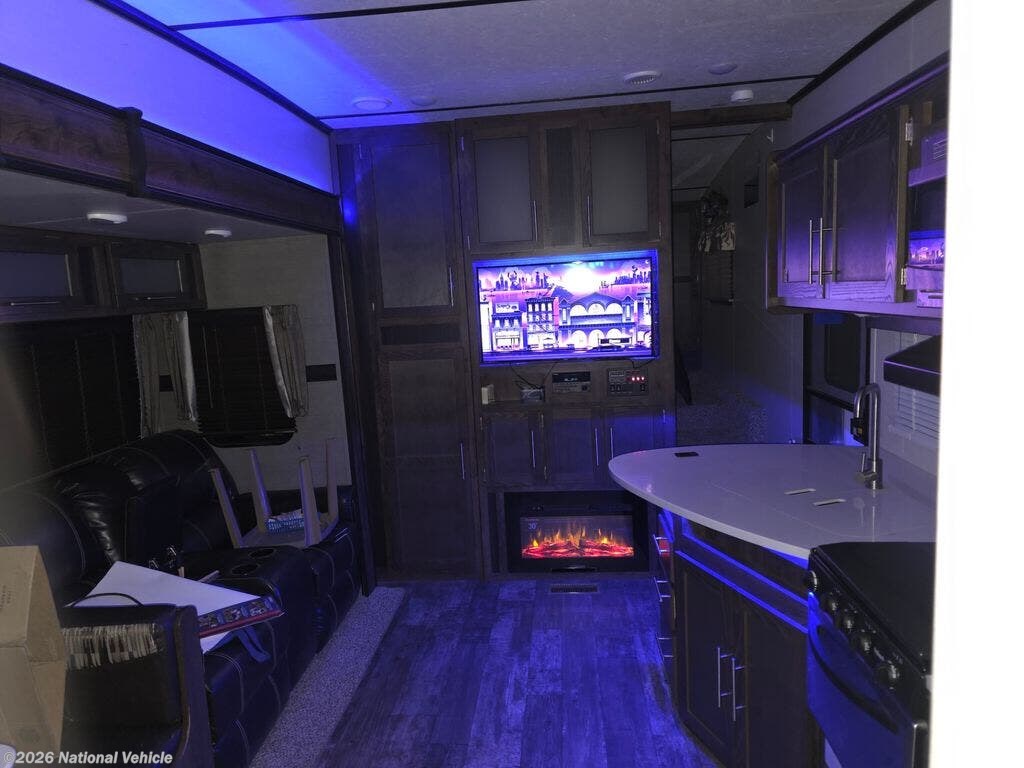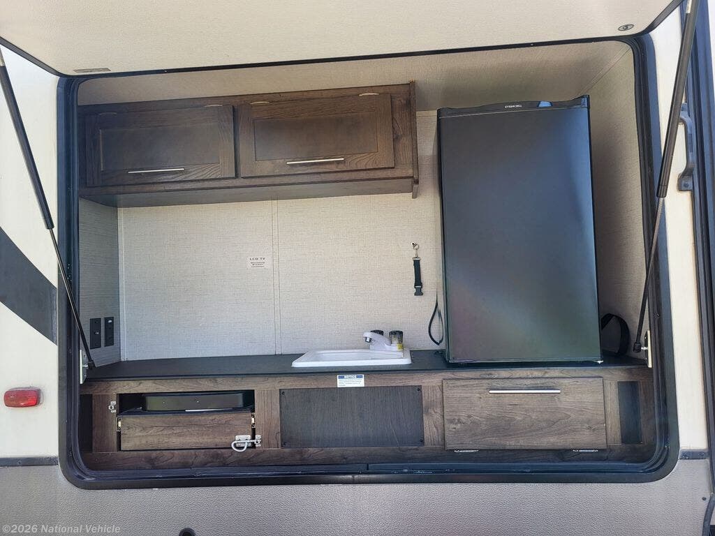 Outdoor living is just as impressive with an exterior kitchen, power awning with LED lighting, and large pass-through storage compartments that make setup and packing effortless at any destination.