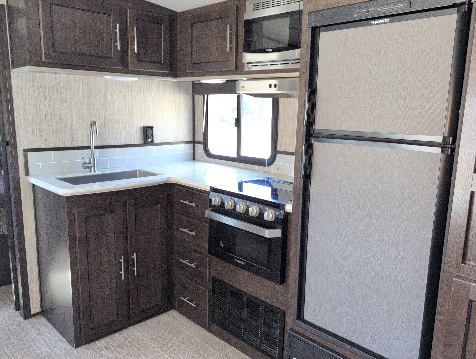 The Fun Finder XTREME LITE travel trailer by Cruiser RV offers 6' 9" vaulted ceilings to provide more interior head room, and the LED-lit exterior pass-through storage allows you to pack more outdoor gear. You will find wall-mount exterior speakers with LED lighting to keep the party going all night and a charging station with 12V and USB ports to keep your electronics charged the whole time. Come see why you shouldn't travel without a Fun Finder XTREME LITE travel trailer towed behind you!